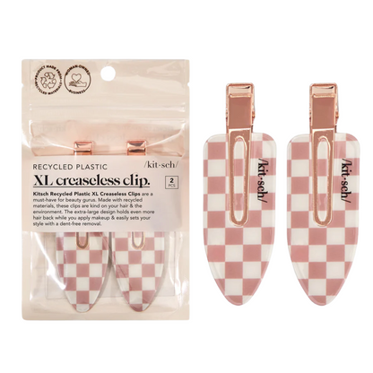 The Kitsch XL Creaseless Clips keeps flyaways & bangs out of your face during makeup application. the extra-large size securely grips thicker sections of hair and they won’t crease, snag, or dent hair. Made with recycled materials, these clips are kind on your hair & the environment. They are a pro favorite tool for runway & backstage beauty prep for a reason!