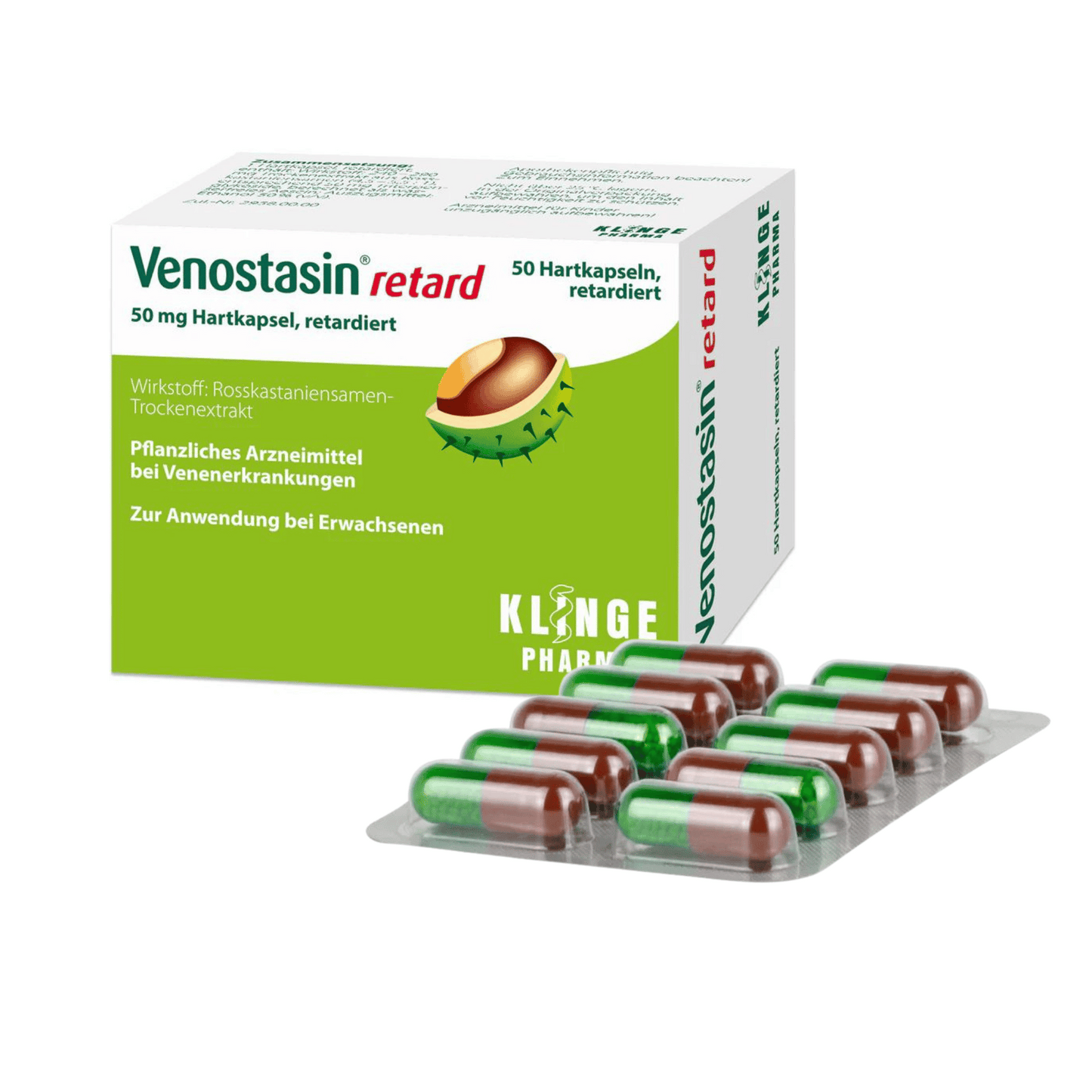 Venostasin® retard capsules contain the herbal active ingredient horse chestnut seed extract. This natural substance strengthens the vein walls from the inside and acts against factors that are harmful to the veins. Less fluid penetrates the leg tissue. Tension, swelling and pain go away. it make take up to 3 months for results to be seen because this stabilizes the vein walls from the inside in the long term and prevents renewed swelling.