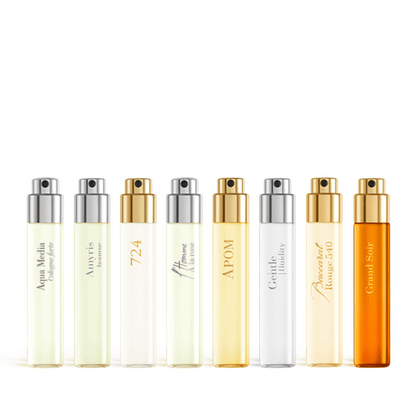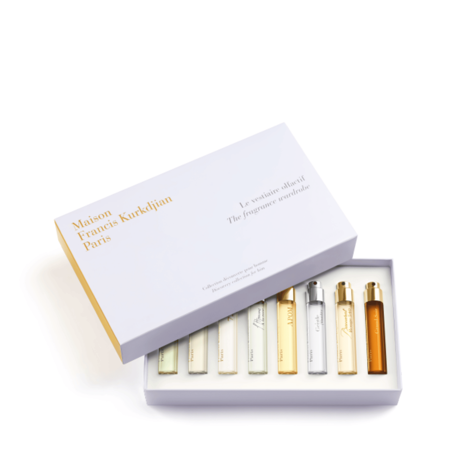 An invitation to browse through the range of expressions, this Maison Francis Kurkdjian fragrance wardrobe for men presents a fine selection of sleek men’s fragrances. This fragrance set consists of eight 11ml perfume refills to explore the different facets of the Maison Francis Kurkdjian fragrance creations: fresh and clean eau de toilette, intense and vibrant eau de parfum, elegant and urban extrait de parfum. This fragrance wardrobe is a perfect gift idea whether you’re giving or receiving.