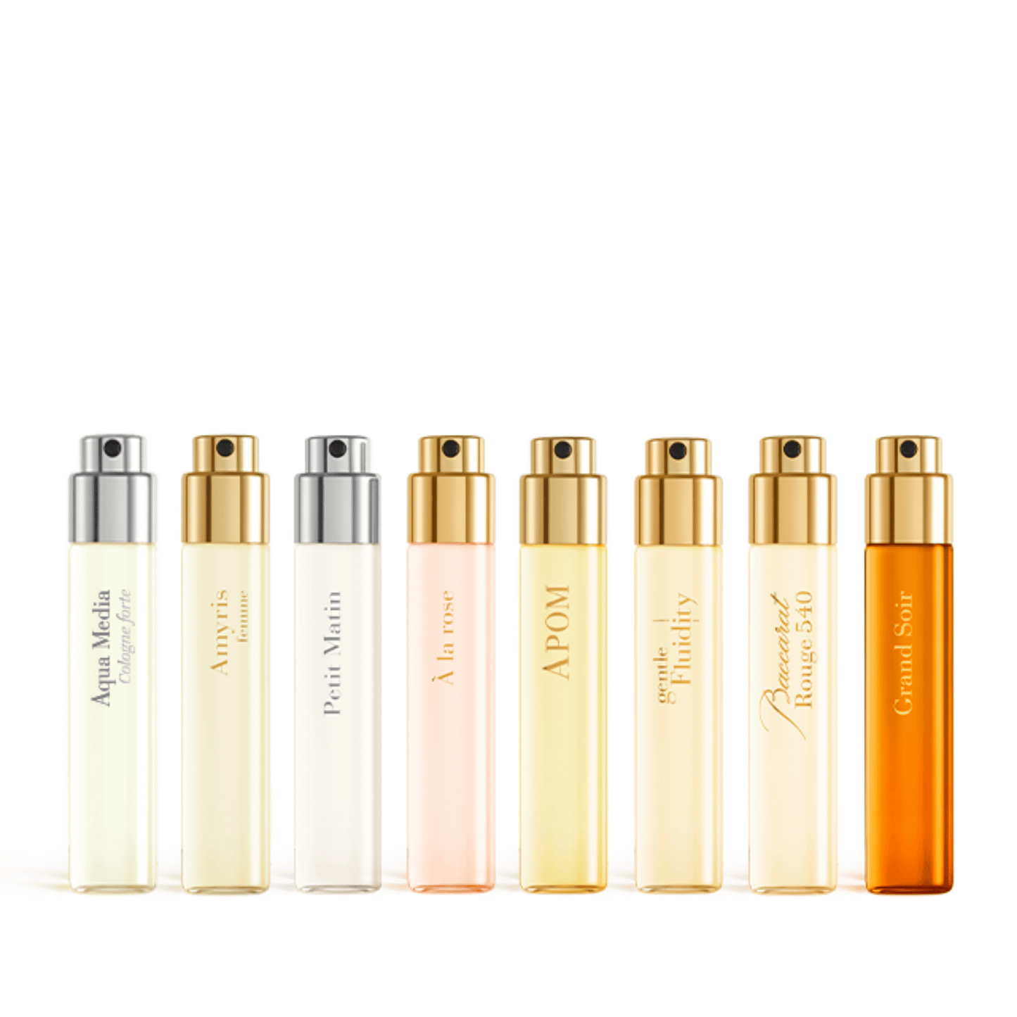 The fragrance wardrobe is an invitation to discover the Maison Francis Kurkdjian range of expression. This set features a selection of eight 11ml perfume refills, exceptional women’s fragrances for divine scents day and night. Each expresses a new facet of personality and embodies a mood, a style, a state of mind and more. This women's set is a perfect fragrance wardrobe where every woman will find a scent to dress her skin. An original gift idea.