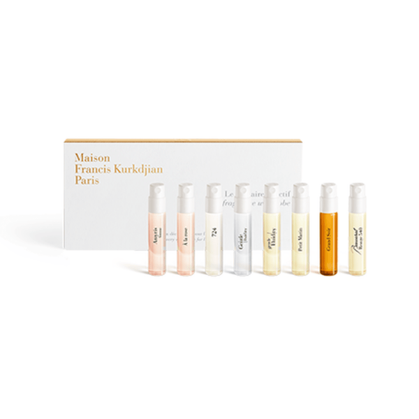 The fragrance wardrobe is an invitation to discover the Maison Francis Kurkdjian range of expression. This set features a selection of eight 12ml perfume samples. These are exceptional women’s fragrances for divine scents day and night. Each expresses a new facet of personality and embodies a mood, a style, a state of mind and more. This women's set is a perfect fragrance wardrobe where every woman will find a scent to dress her skin.