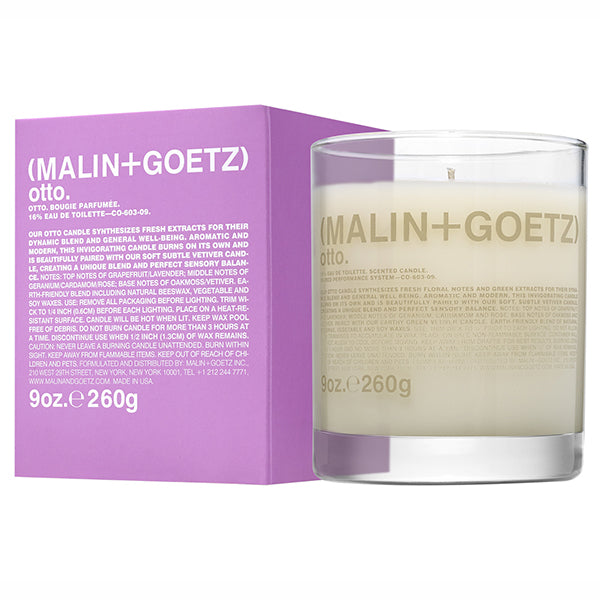 Latin for 'extract,' Otto is the synthesis of 20 garden extracts blended for personal interpretation. Be it floral, green, berry or earthy, Otto Candle is a dynamic collection of complementary notes combined to please the mind and enhance any environment.Select ingredients:Top notes of grapefruit and cardamom; middle notes of geranium and rose; base notes of oakmoss and vetiver.Crafted with an earth-friendly blend of beeswax, vegetable and soy waxes, offering a cleaner and better burn. Scented with 18 percent eau de toilette.
