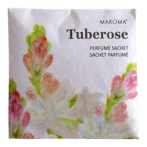 The handmade tuberose perfumed sachet is fragranced with a blend of natural essential oils infused into wood powder. Place them in cupboards, drawers, laundry baskets and travel bags. You can store one with seasonal clothes to keep them fresh!