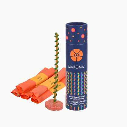 Maroma's Spiral Incense is crafted by hand and each stick is entwined with 2 scintillating scents. It is packaged in a tube with a ceramic holder. Each stick is made of wood powder with botanical gum base, and uses no charcoal, and is scented with natural essential oils to create a unique incense experience. Each stick features 2 fragrances that blend beautifully together for up to 60 minutes. The set includes 2 of each fragrance combination and special ceramic holder.