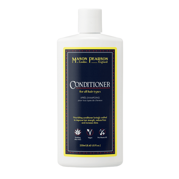 The Mason Pearson Conditioner for All Hair Types is the second step in a haircare routine, after washing with the Mason Pearson Shampoo.