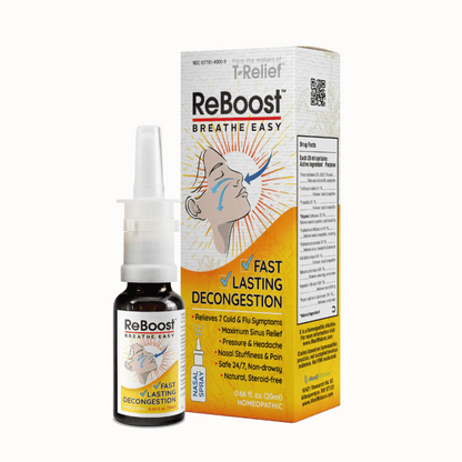 ReBoost decongestion is a natural spray designed to reduce nasal congestion, while also relieving many extra cold and flu symptoms. It provides fast lasting nasal decongestion. The potent blend of all-natural substances included in ReBoost Nasal Spray helps to open up the nasal passages and promote easier breathing and relieve multiple cold & flu symtoms.