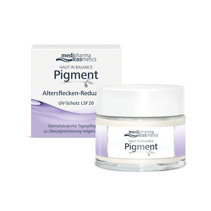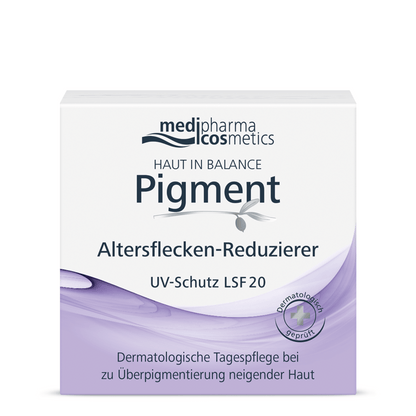 Hormonal influences and sun exposure can be responsible for dark spots on the skin. Hyperpigmentation, such as age spots and freckles, can occur. The dermatological day care from HAUT IN BALANCE Pigment works intensively against discolored areas such as age or pigment spots. The combination of active ingredients contained in it visibly lightens the affected areas. The complexion appears more even and the skin is intensively cared for. SPF 20 protects against the formation of new pigment spots. Help your skin restore its natural balance.
