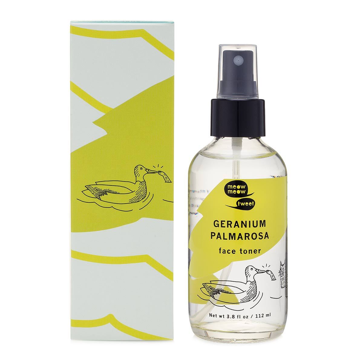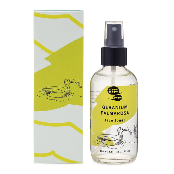 Meow Meow Tweet's Face Toner is the secret weapon in your skin care arsenal. Made with beautifully pure organic plant-based ingredients, this subtle floral spray is packed with antioxidants and nutrients that will leave your face fresh, balanced and toned.Spray a light mist over your entire face after cleansing. While skin is still moist, massage in Meow Meow Tweet's Face Oil- collaboratively the products will deliver all of their beneficial nutrients deeper into your pores.3.8 oz in a glass pump bottle.