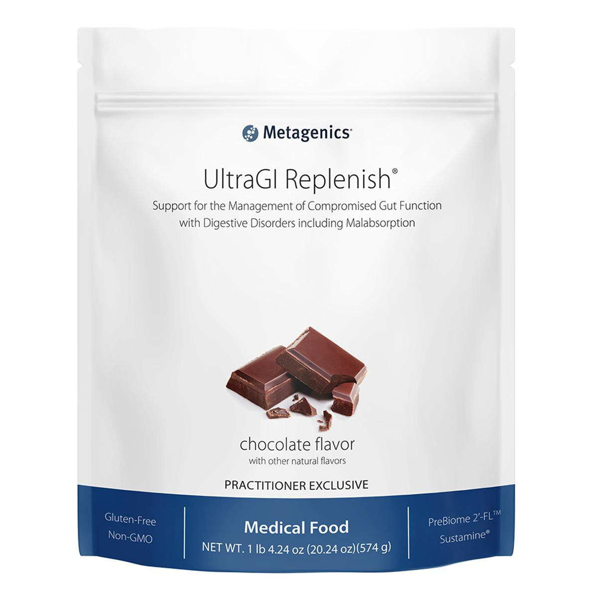 UltraGI Replenish is a medical food formulated to provide specialized macro-and micronutrient support for patients challenged by compromised gut function with digestive disorders including malabsorption. It is designed to complement an eating plan that excludes common food allergens and supports healthy gut function.UltraGI Replenish is formulated with prebiotic isomalto-oligosaccharides (IMOs) and nature-identical human milk oligosaccharides (HMOs, as PreBiome 2'-FL)- IMOs encourage production of short-chain fatty acids to address mucosal and intestinal issues- Nature-identical HMOs as 2'-fucosyllactose (PreBiome 2'-FL) selectively nourish beneficial bacteria to promote intestinal microbial balanceUltraGI Replenish is made with Sustamine, an advanced alanine-glutamine dipeptide designed for enhanced absorption, stability, and solubility- L-glutamine is a valuable energy source for intestinal mucosal cellsContains a total of 15 g protein per serving?12 g of pea/rice protein blend and 3 g of added amino acids and SustamineProvides essential nutrients to address malabsorption, including:- Methylated vitamin B12 and calcium L-5-methyltetrahydrofolate, a bioavailable folate- Antioxidant nutrients (e.g., vitamins C and E) to combat free radicals, including those that contribute to mucosal oxidative stress- Zinc as Zinc Gluconate to support gastrointestinal mucosa integrity