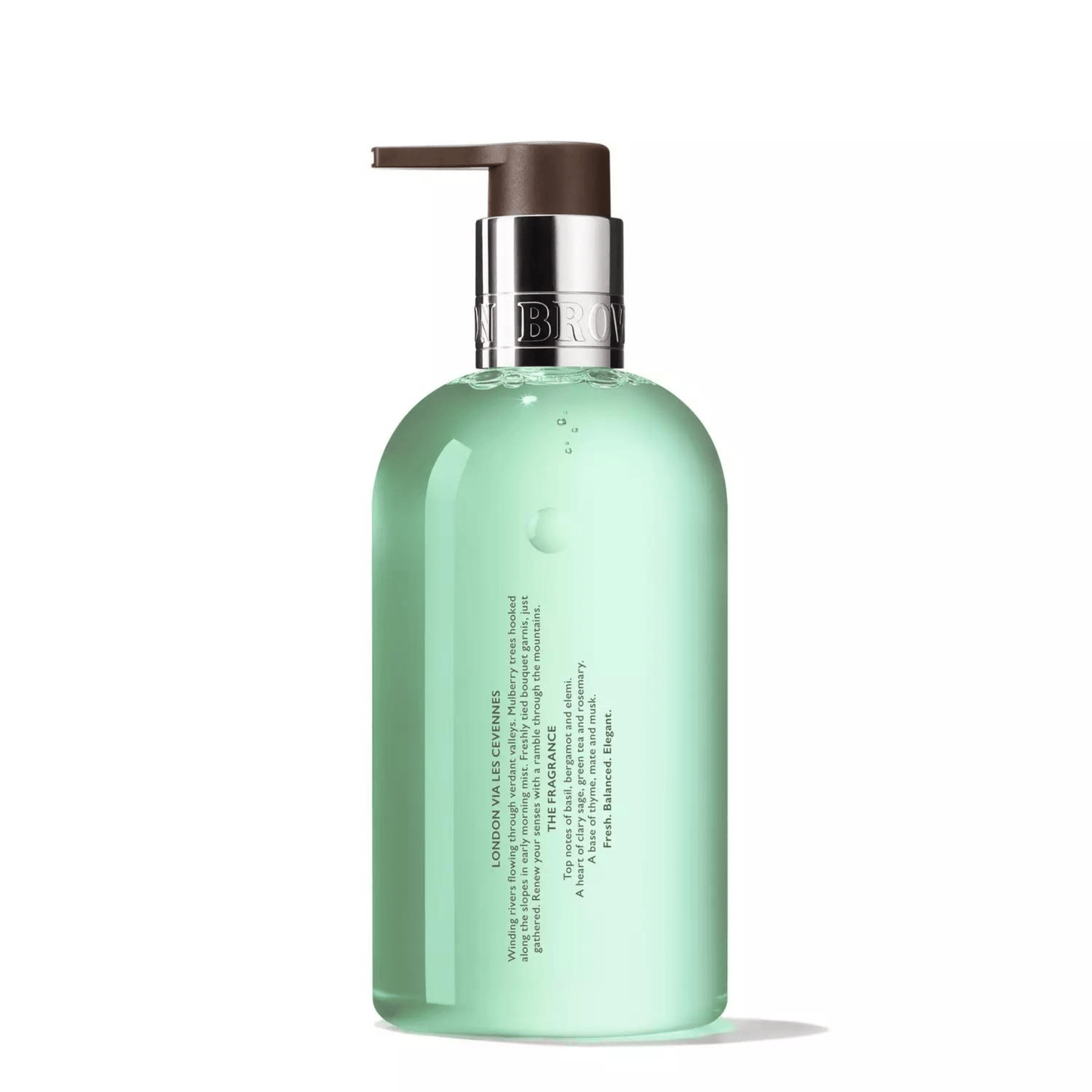 Refresh your skin and senses with refined verdant notes of clary sage, bergamot and thyme in this luxurious hand wash. Winding rivers flowing through verdant valleys. Mulberry trees hooked along the slopes in early morning mist. Freshly tied bouquet garnish, just gathered. Renew your senses with a ramble through the mountains. Fresh. Balanced. Elegant.