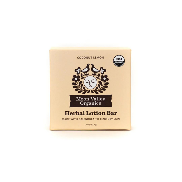 Coconut Lemon Herbal Lotion bar is one of our original bars, great for anyone with sensitive skin. The scent is soft and basic, using coconut oil as an antibacterial fatty acid to moisturize and protect and lemon essential oils an astringent to tone the skin.