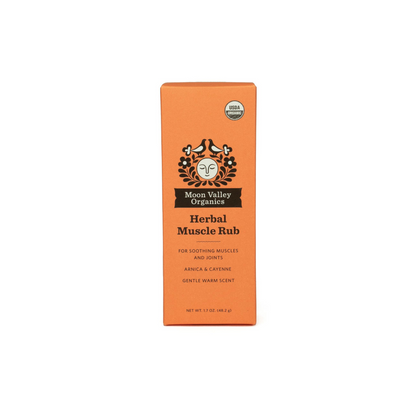 Herbal Muscle Rub, with Organic Arnica and Cayenne deeply penetrates to stimulate circulation and warms tired muscles and joints.