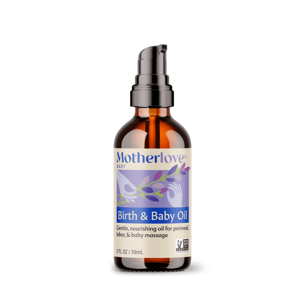 Birth & Baby Oil is a gentle, nourishing oil that is perfect for delicate skin. This oil is infused with organic lavender blossoms and has a relaxing, pleasant scent. It is a gentle, nourishing oil for perineal, labor, & baby massage. It has many soothing uses including use on lower back & vaginal area during labor, and post partum for baby massage, moisturizing the skin after a bath and soothing a dry scalp.