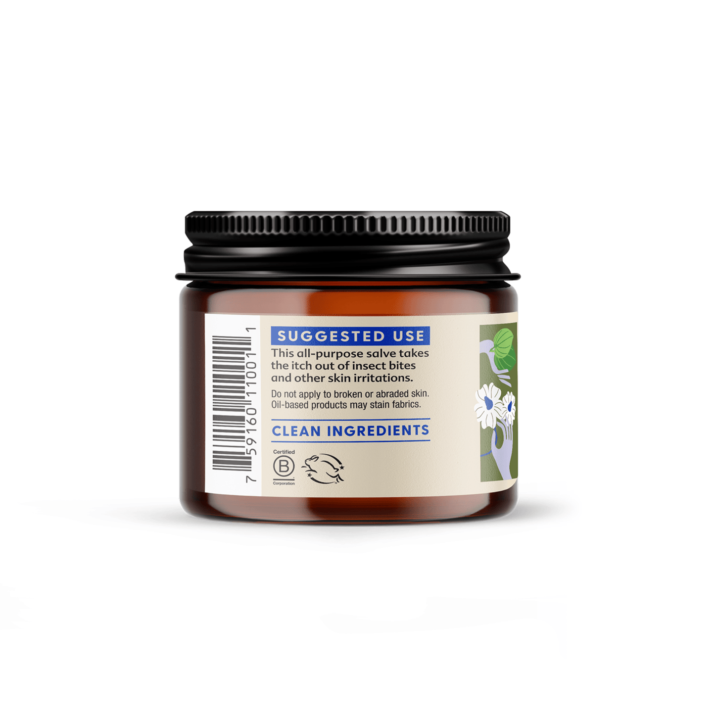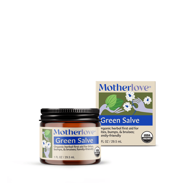 A family-friendly organic herbal first aid salve for bites, bumps, and bruises. The Green Salve is a family-friendly organic first aid salve for bug bites, bumps, and bruises. This herbal ointment is a must-have item for those who love camping, hiking, and outdoor adventures. It can be considered an Herbal First Aid Kit in a jar! Perfect for bug bites and stings, and soothes irritated and itchy skin. Great for the entire family, big or small. Remember, a little goes a long way!