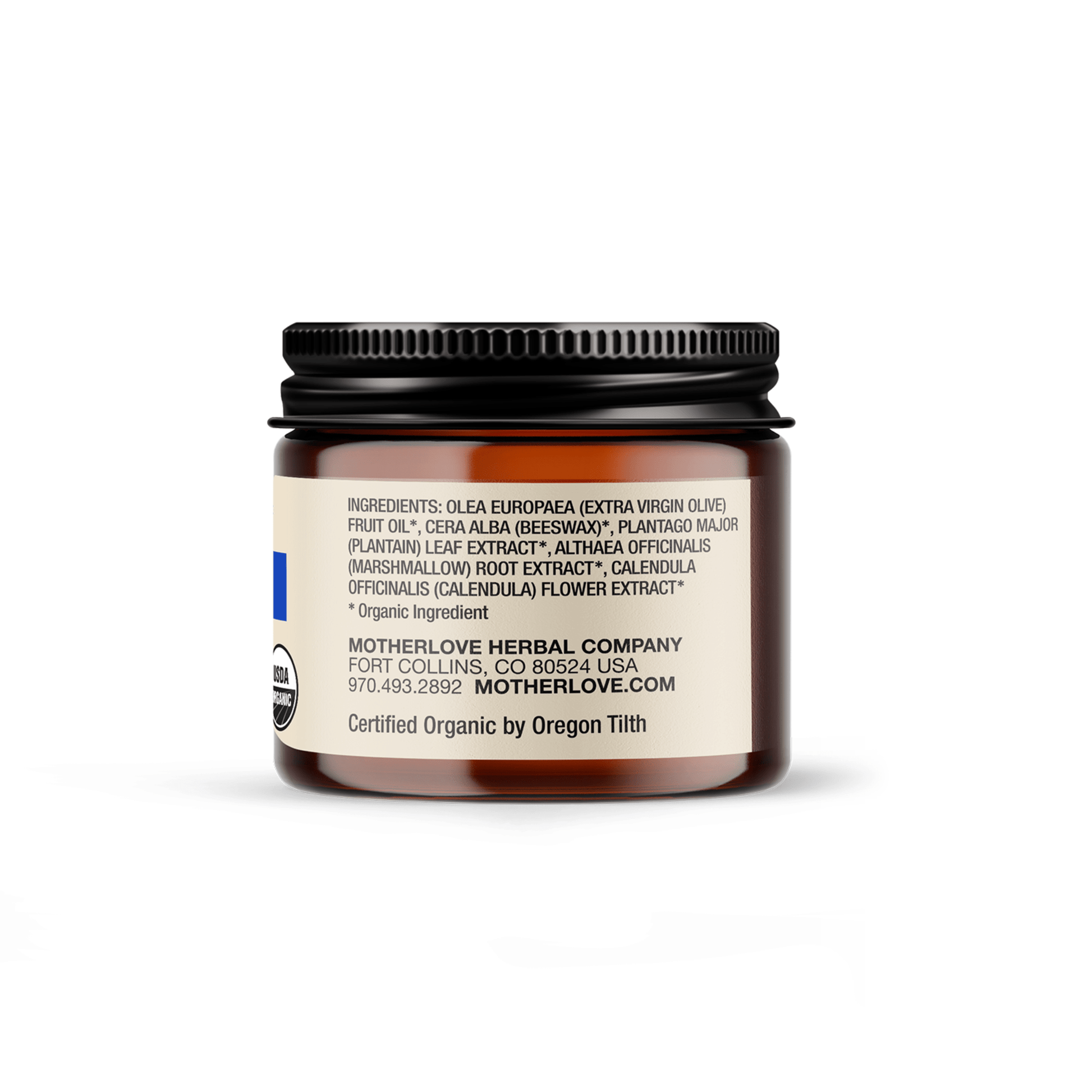 Extra virgin olive oil*, beeswax*, plantain leaf*, marshmallow root*, calendula flower*