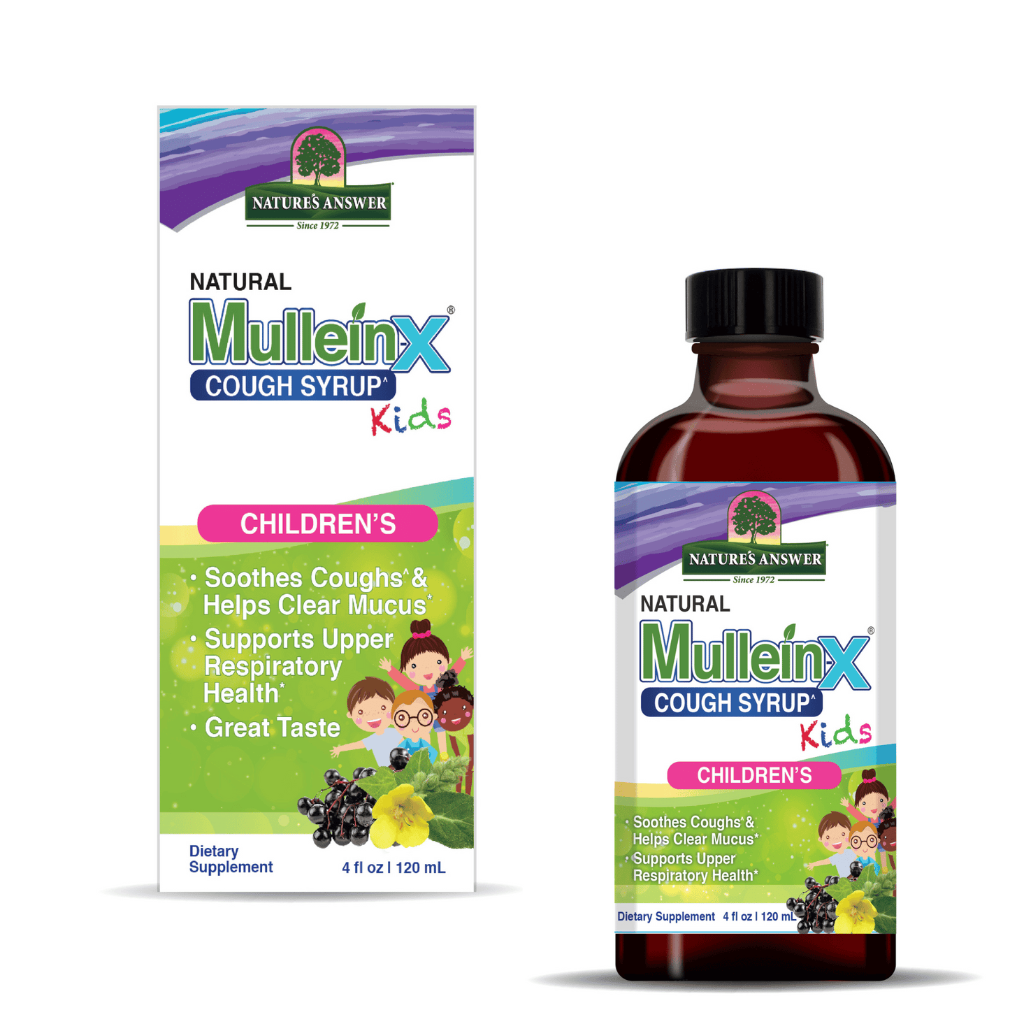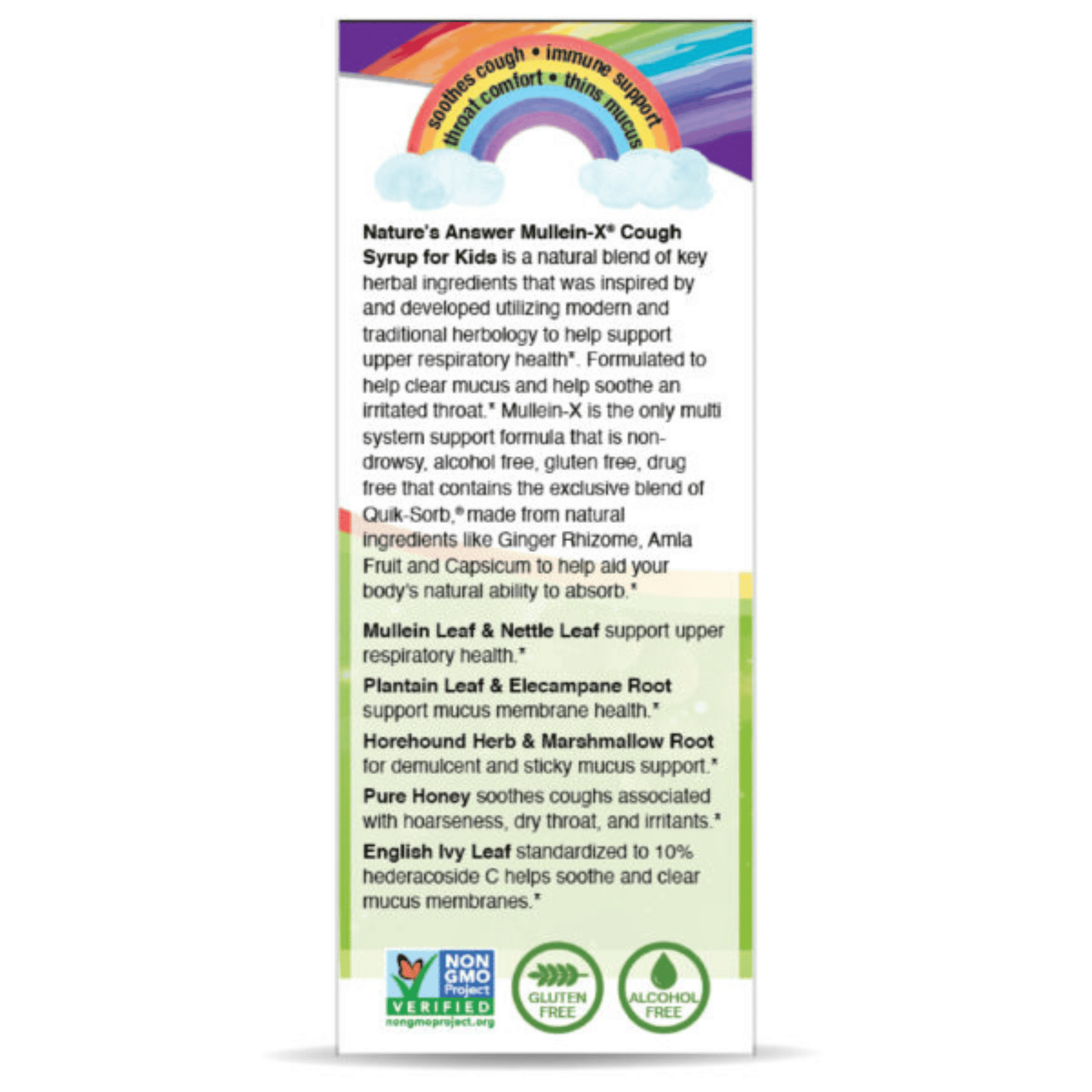 Kid’s Mullein-X Cough Syrup is used to help soothe your little ones coughs, helps clear mucus and supports upper respiratory health.