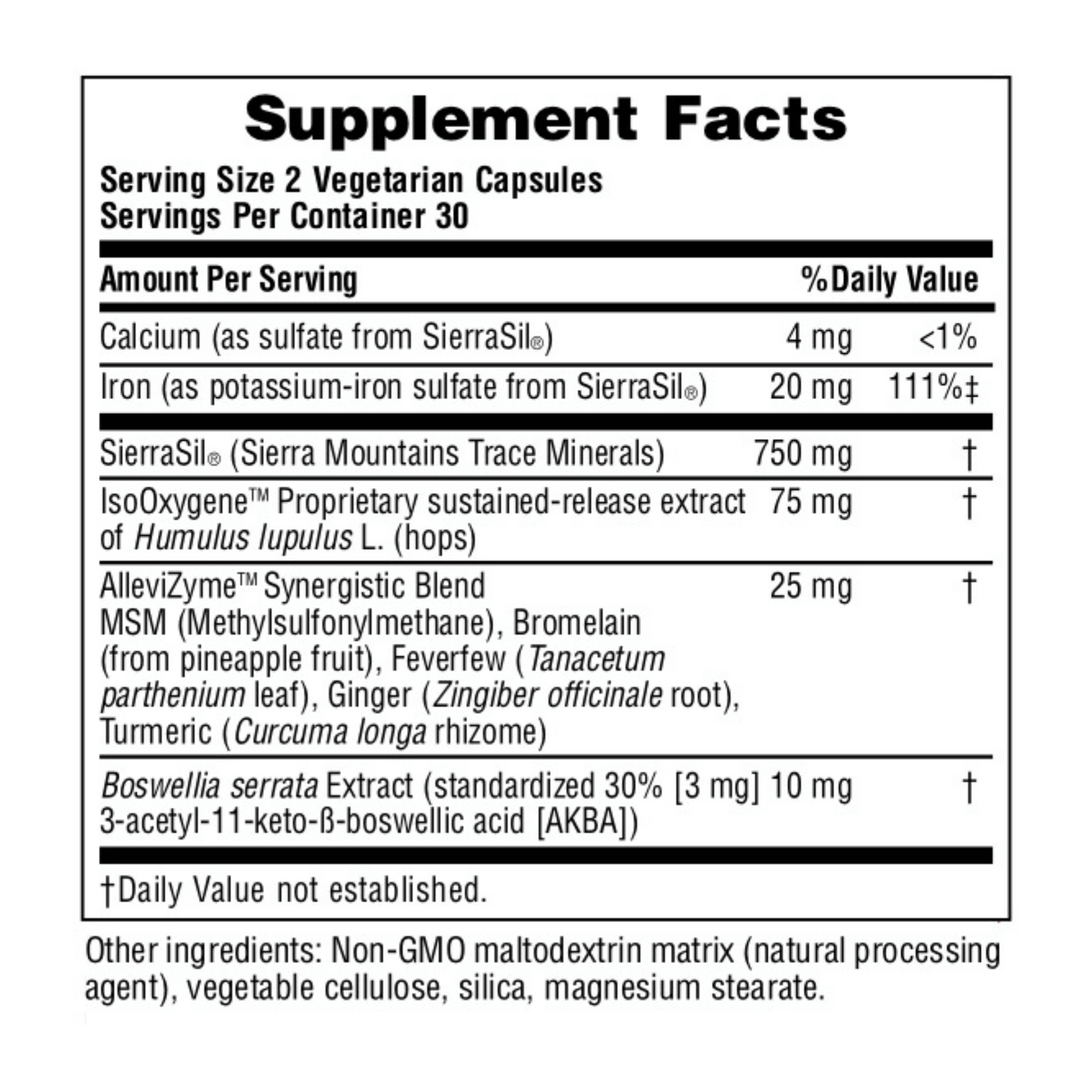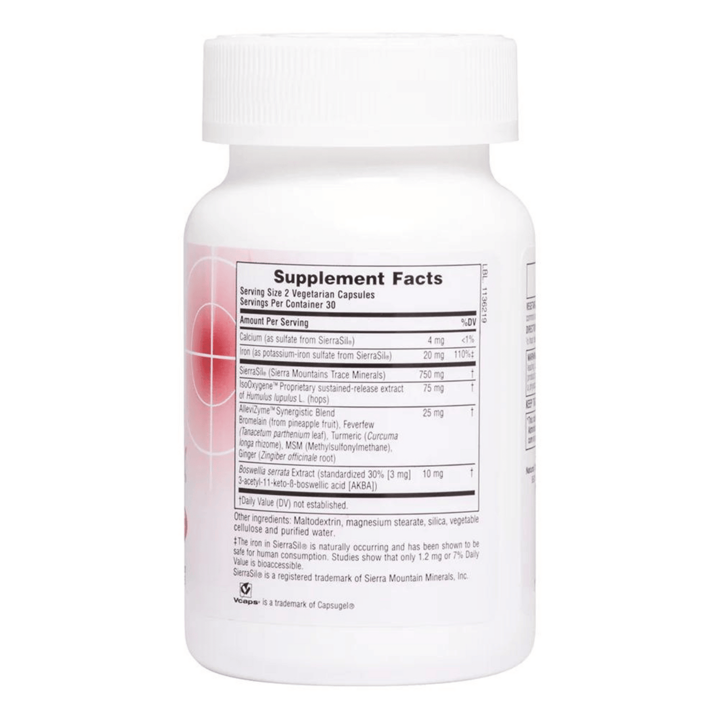 Looking to support a healthy inflammation response? Then you want Ultra InflamActin from NaturesPlus. Ultra InflamActin supports healthy control of inflammation due to strenuous physical activity such as work or exercise. It uses a proprietary blend of ingredients to support you joints. 750 mg of SierraSil® mineral complex to support joint comfort, 75 mg of hops-based IsoOxygene® to further promote comfort, and AlleviZyme™ Herbal blend supports a healthy immune response.