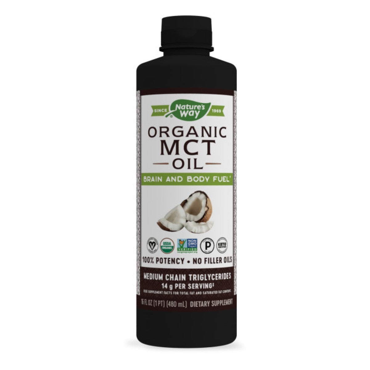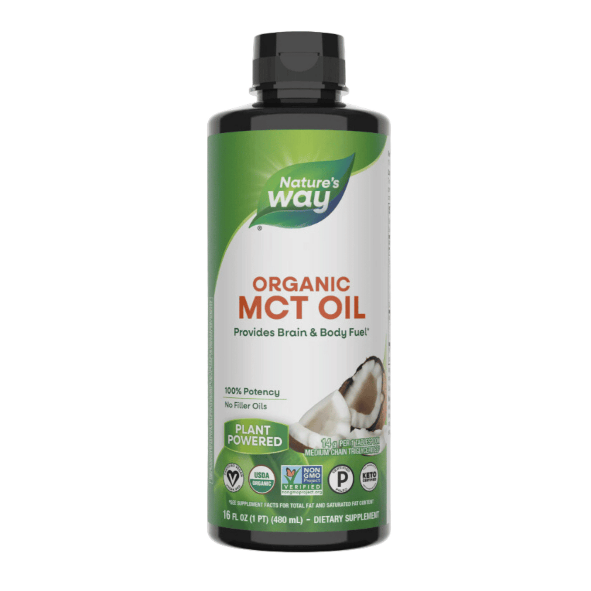 Fuel your brain and body with 100% MCT Oil. MCT Oil helps you feel full and is quickly digested and converted into energy, making it a convenient way to help power your day. Mix this flavorless, odorless oil into your daily coffee or smoothie, or add it to your favorite foods and dressings to kickstart your wellness routine. This versatile, flavorless oil is made from a pure source of premium coconuts – no palm oil or filler oils. It provides 14 grams of MCTs (including caprylic and capric acids) per serving.
