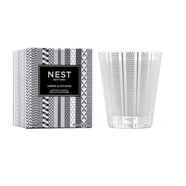 This Classic Candle offers an exotic take on ancient traditions with rich notes of crisp black amber, frankincense, and aromatic cedar.