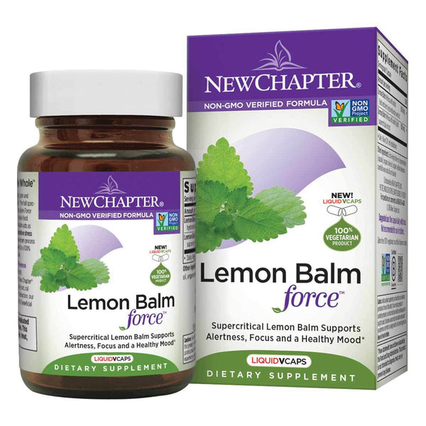 Lemon Balm Force supports a healthy mood, calm, and well-being by supporting alertness and focus. The full spectrum of beneficial compounds found in Lemon Balm Force is delivered using a supercritical extraction, whole- food approach to herbal supplementation. Lemon Balm acts as an antioxidant, helping to protect against oxidative stress and support the immune system. New Chapter uses no harsh chemicals or solvents to deliver a super pure, super potent herbal extract.Many companies isolate elements from an herb, concentrate it, and label it 'whole herb.' New Chapter delivers the wisdom of whole food. Using only solvent- free methods, including supercritical CO2 extraction, our natural Force extracts guarantee the fullest spectrum of beneficial phytonutrients in their natural profile.