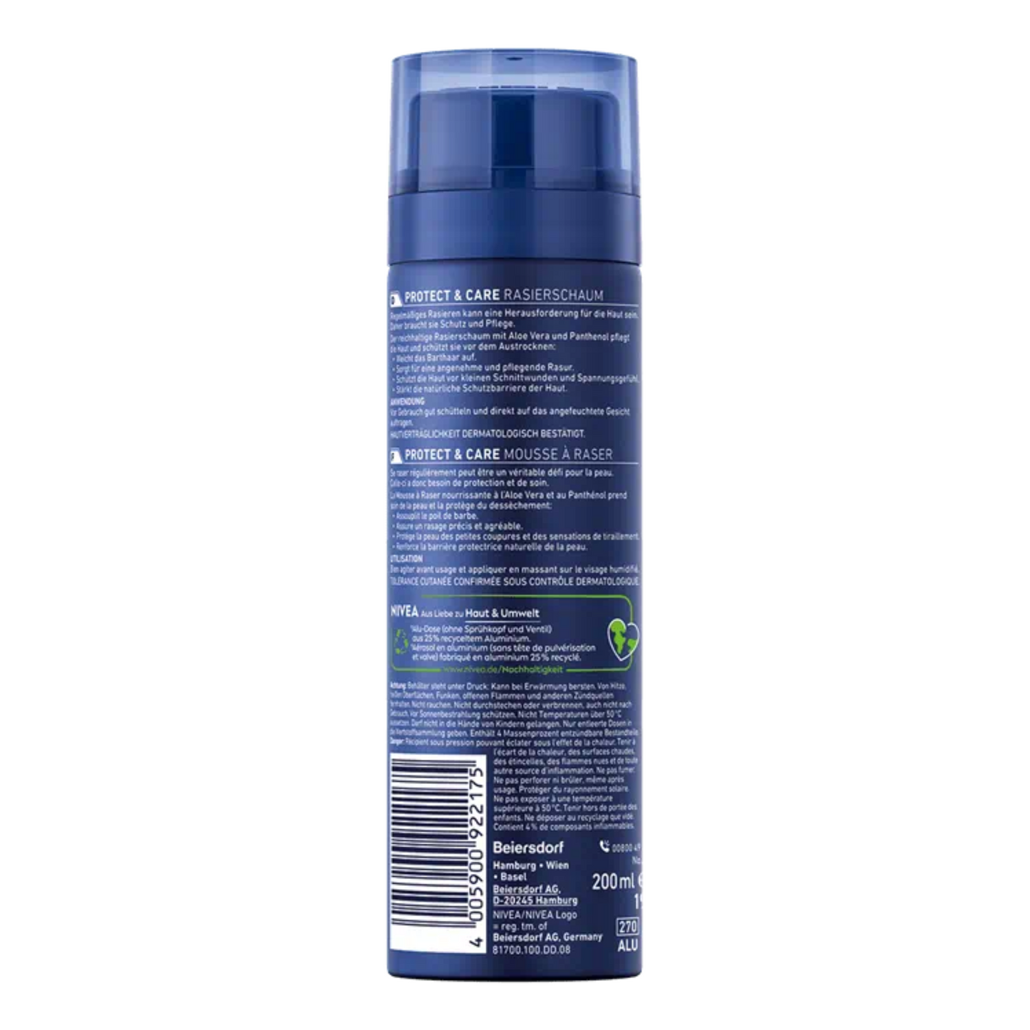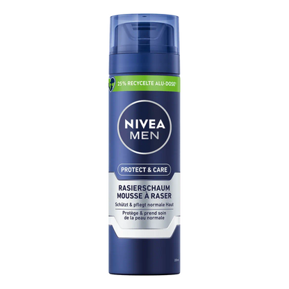 The Nivea Men Protect & Care Shaving Foam is a skin-conscious choice to protect the skin during shaving. Made with all-natural ingredients and formulated with Aloe Vera and Panthenol, the Nivea Men Protect & Care Shaving foam creates a naturally moisturizing barrier for a smooth and hassle-free shave. Formulated for normal skin types, this shaving cream protects against cuts and burns caused by razors.