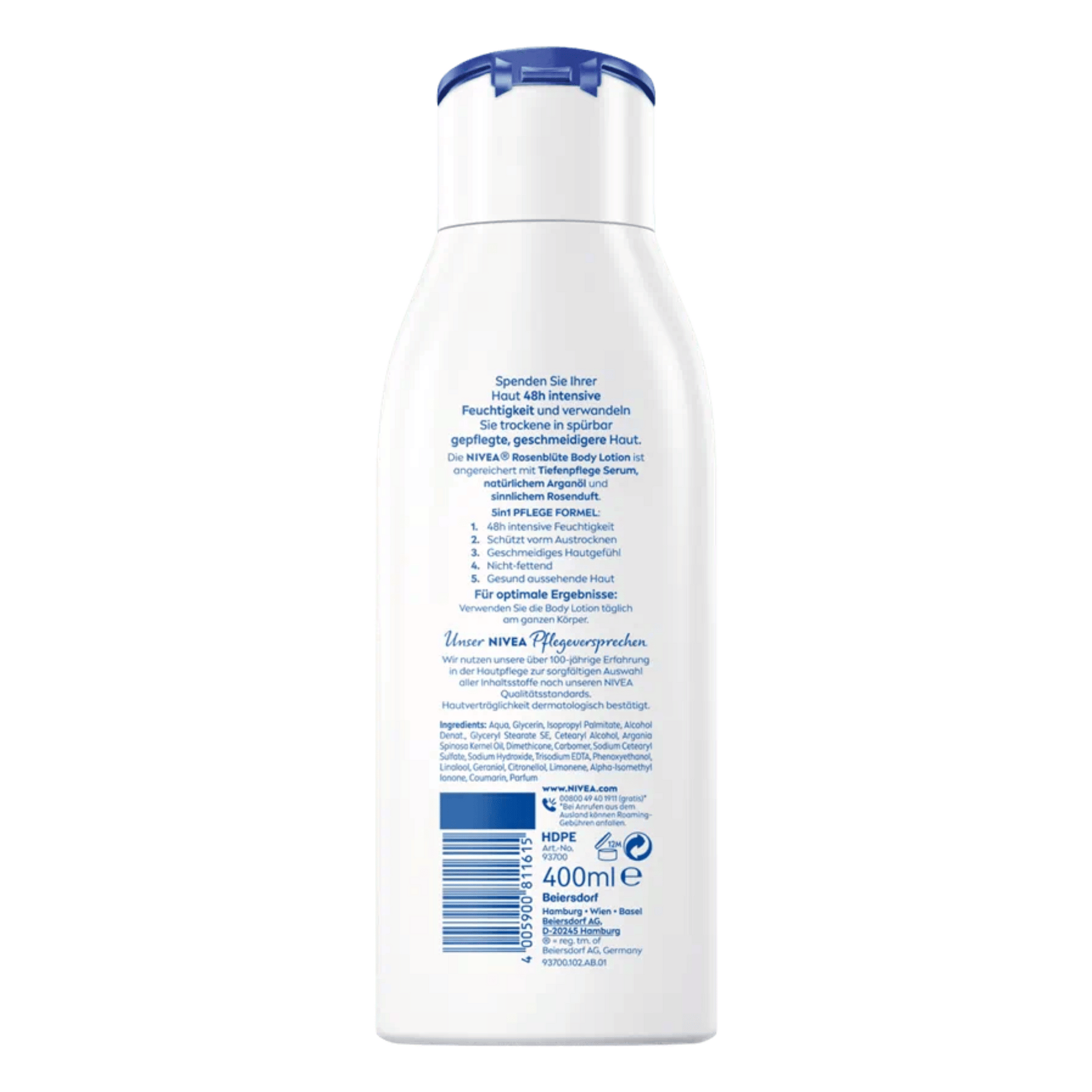 The Nivea Rose Blossom Body Lotion moisturizes your skin for 48 hours with a sensual scent of rose blossoms. It is enriched with the Nivea deep care serum and natural argan oil and pampers your skin with the 5-in-1 care formula: