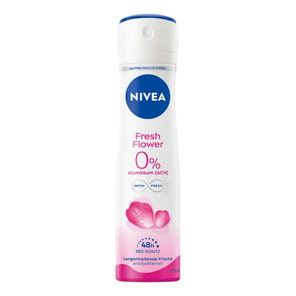 NIVEA Fresh Flower 0% aluminum salt provides a feeling of freshness all day long and a fresh floral fragrance. Reliable 48h deodorant protection and skin care. It does not contain aluminum salts. It is dermatologically proven to be gentle on the skin.