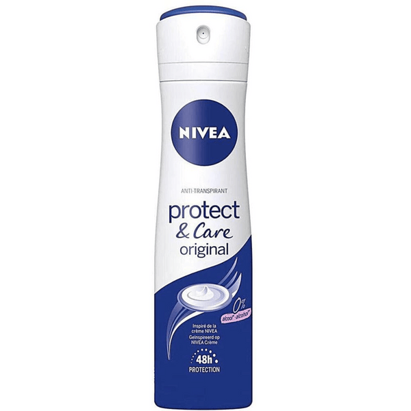 NIVEA Protect & Care Spray antiperspirant for women contains ingredients and the fragrance of NIVEA Cream, gently cares for the skin under the arms, and at the same time provides highly effective protection against perspiration. This perfect combination of effectiveness and care makes you feel confident throughout the day. The antiperspirant will prevent excessive sweating for up to 48 hours, providing you with the subtle scent of NIVEA Cream. The product does not contain alcohol.