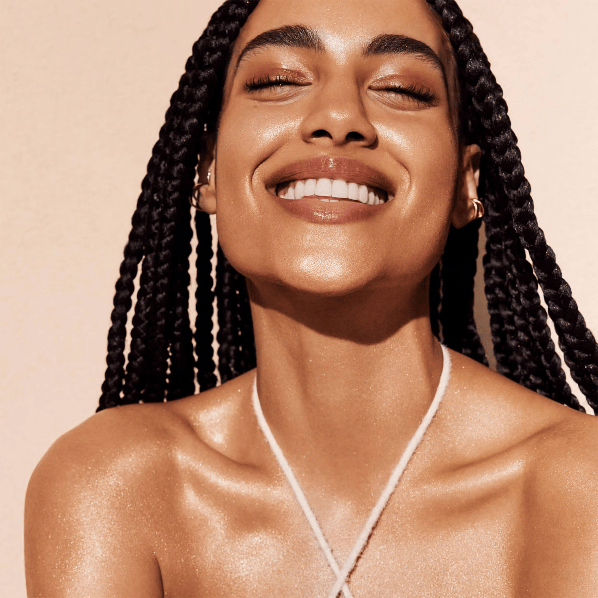 - On your body, spray 2 to 3 drops in your hands. Decide which areas you want to highlight and very gently smooth your hands over them.