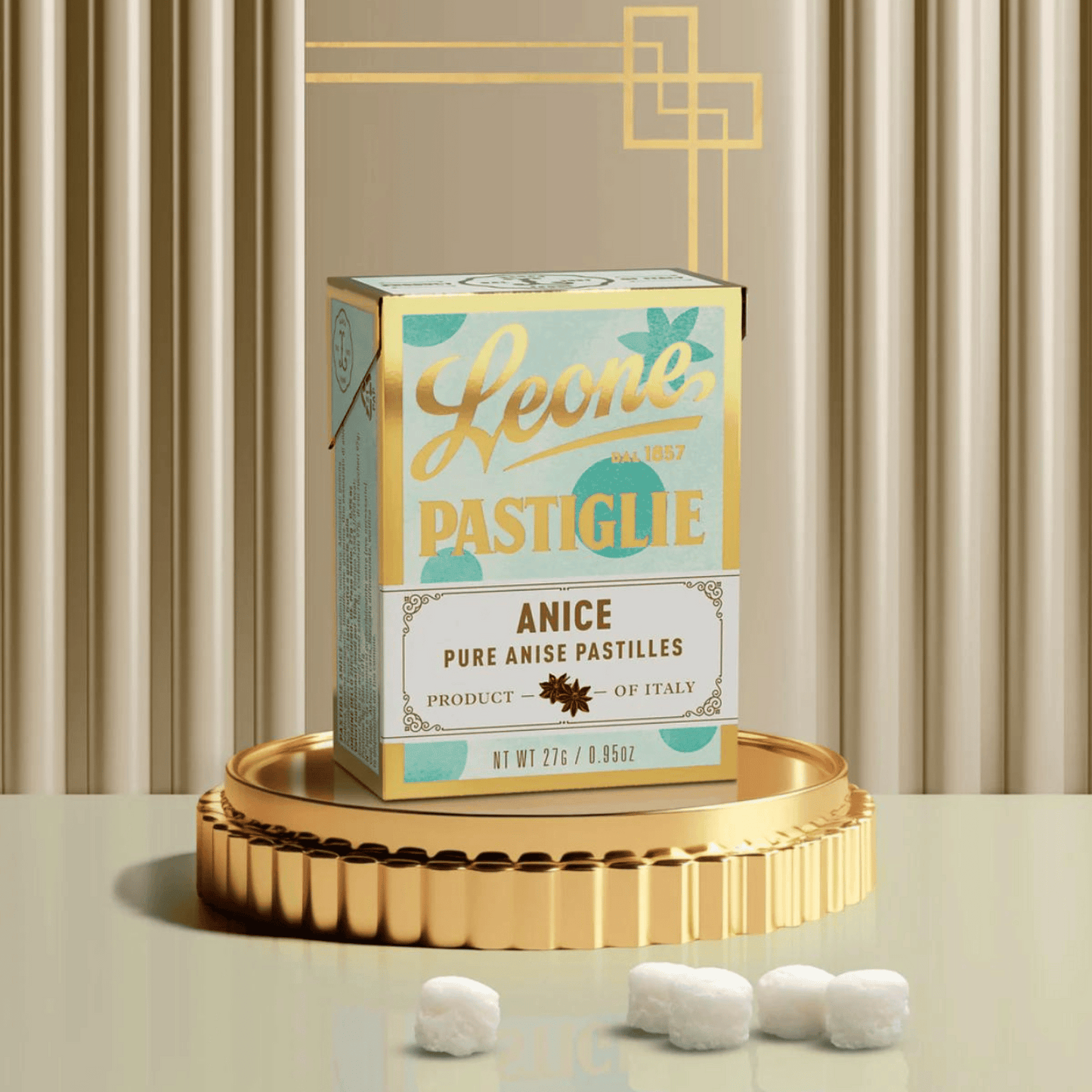 These tiny, but mighty herbal candies come in a small vintage looking box. Leone's Fine Candies Pastilles are the company's oldest and most distinctive confectionery product. These small delights are the result of a careful choice of essences, extracts and herbs to enhance the fragrance and scent of the various different flavors. With their fun colors and charming packaging, Leone Pastilles are alluring to the eye as well as the palate!