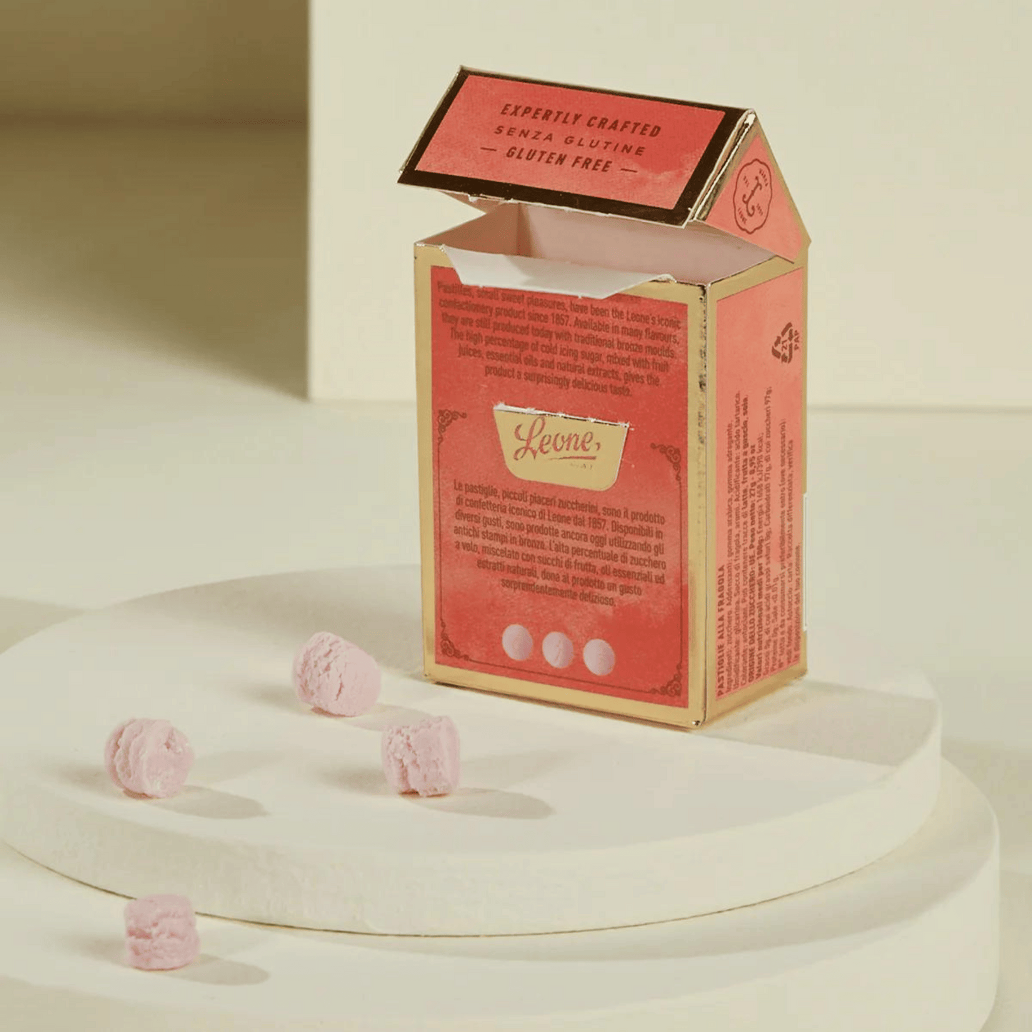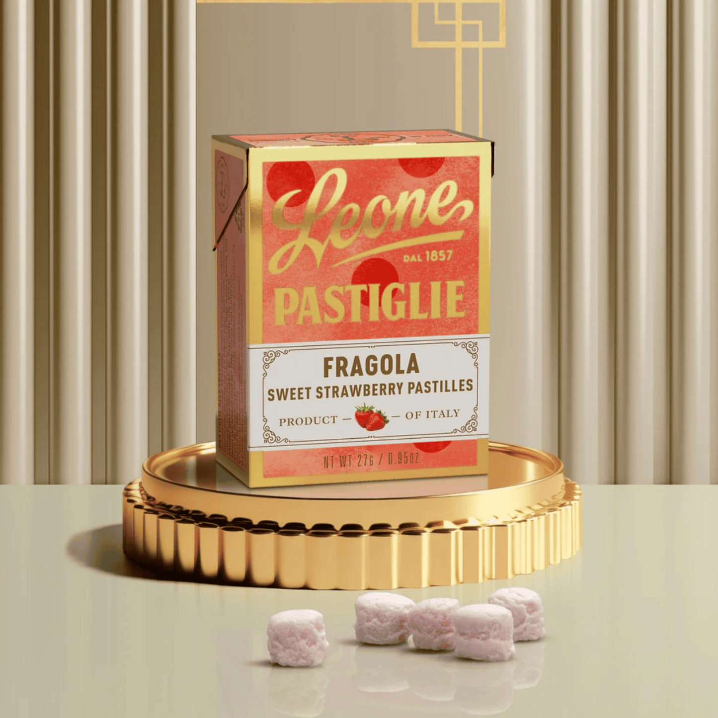 These tiny, berry candies come in a small vintage looking box. Leone's Fine Candies Pastilles are the company's oldest and most distinctive confectionery product. These small delights are the result of a careful choice of essences, extracts and herbs to enhance the fragrance and scent of the various different flavors. With their fun colors and charming packaging, Leone Pastilles are alluring to the eye as well as the palate!