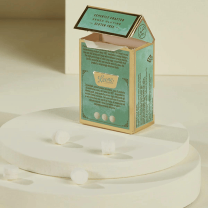 A little box to always carry with you, full of small mint-flavored sugary treasures.