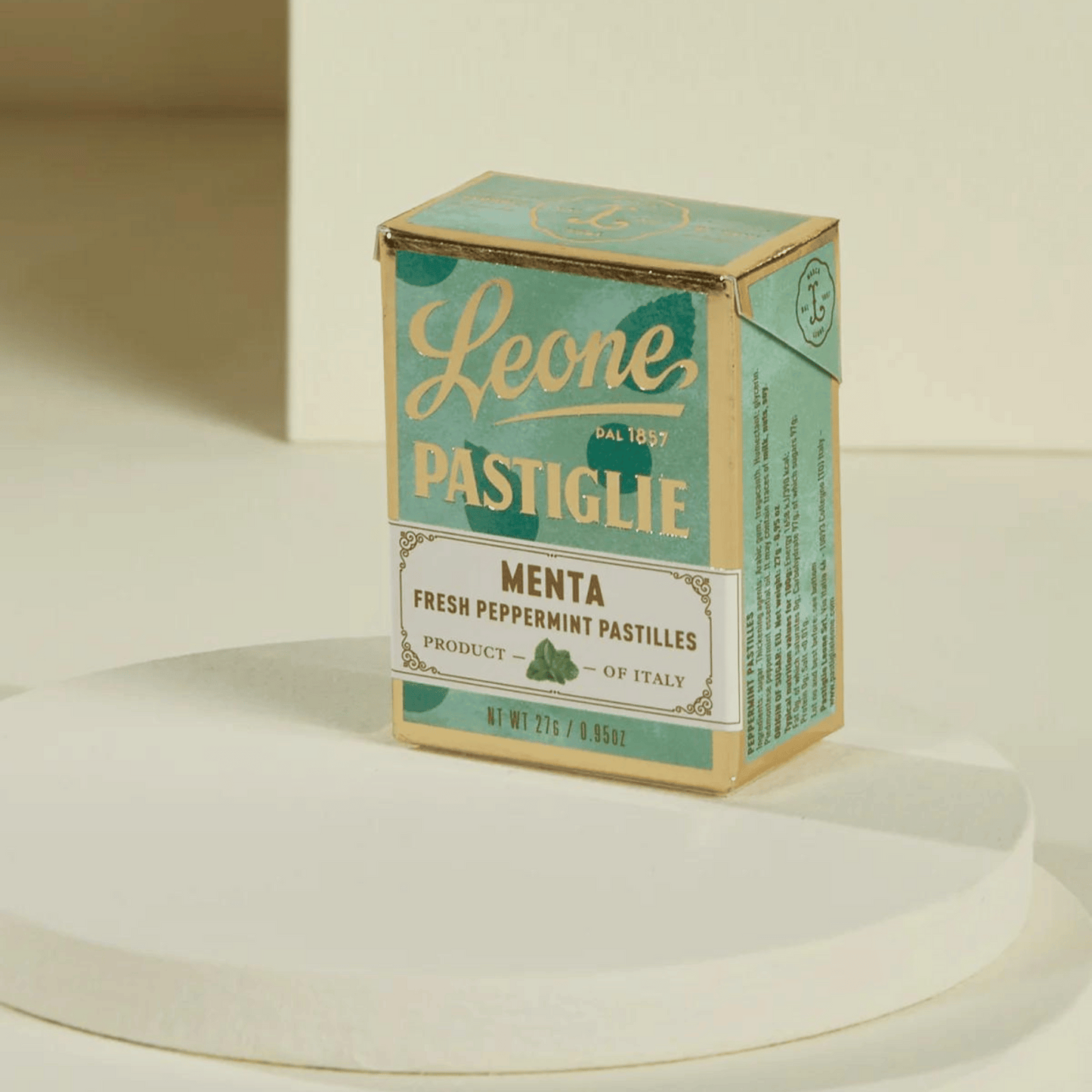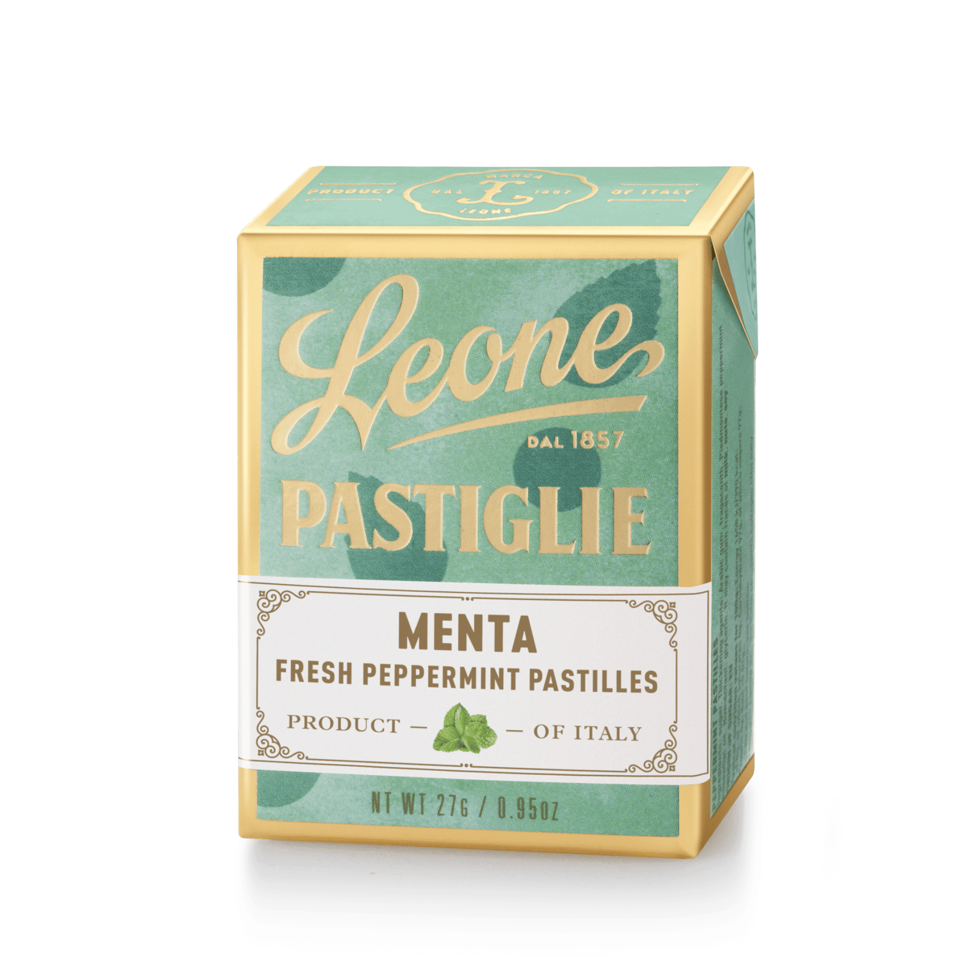 These tiny, mild-mannered peppermint candies come in a small vintage looking box. Leone's Fine Candies Pastilles are the company's oldest and most distinctive confectionery product. These small delights are the result of a careful choice of essences, extracts and herbs to enhance the fragrance and scent of the various different flavors. With their fun colors and charming packaging, Leone Pastilles are alluring to the eye as well as the palate!