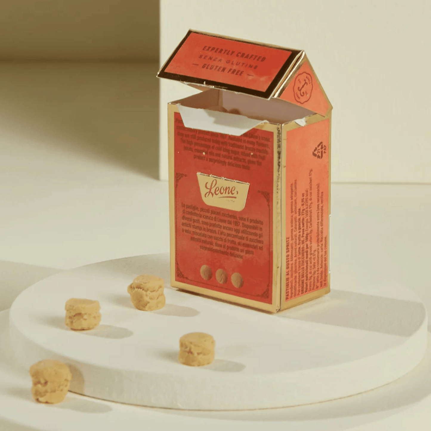 The very Italian ritual of the aperitif is re-interpreted in an original candy with an unmistakable bitter orange flavor. Spritz Pastilles turn any moment in your day into a real happy hour! Leone's Fine Candies Pastilles are the company's oldest and most distinctive confectionery product. These small delights are the result of a careful choice of essences, extracts and herbs to enhance the fragrance and scent of the various different flavors. With their fun colors and charming packaging, Leone Pastilles are alluring to the eye as well as the palate!