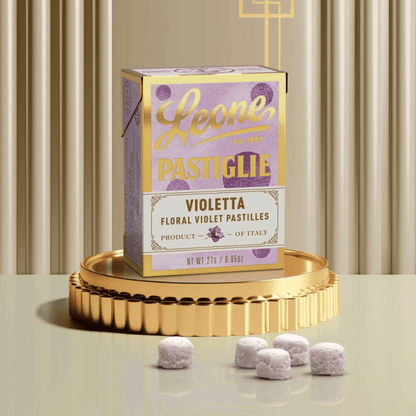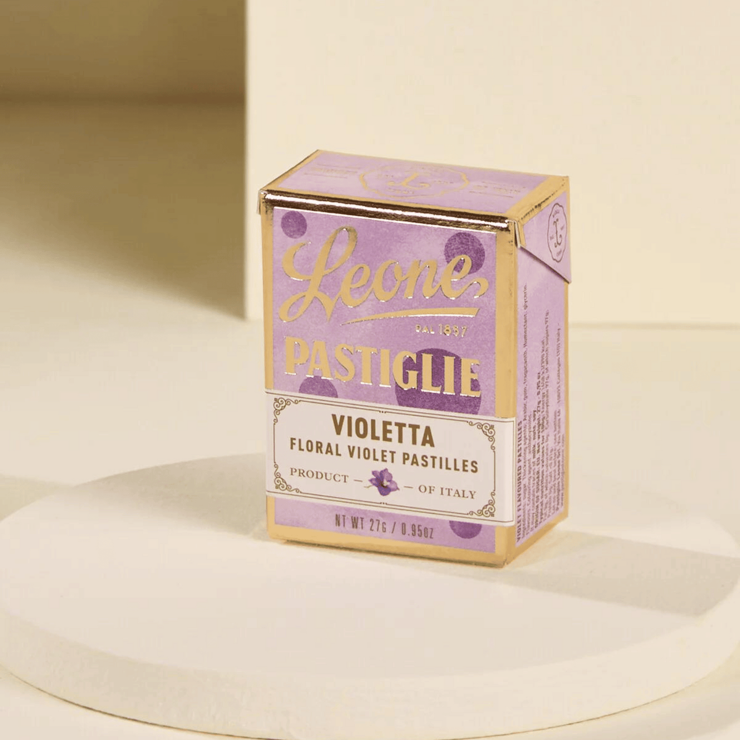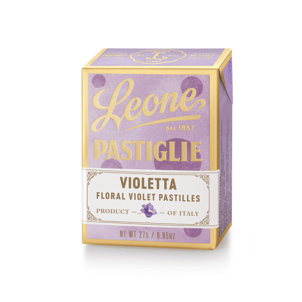 These tiny, classic violet candies come in a small vintage looking box. Leone's Fine Candies Pastilles are the company's oldest and most distinctive confectionery product. These small delights are the result of a careful choice of essences, extracts and herbs to enhance the fragrance and scent of the various different flavors. With their fun colors and charming packaging, Leone Pastilles are alluring to the eye as well as the palate!