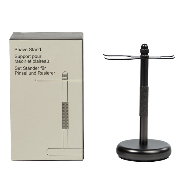 This universal stand by Perma Brands is designed to accommodate a standard size brush (up to 28mm knots) and a safety razor. It is an excellent device for maintaining, displaying, and organizing the most wonderful shaving tools used on a daily basis.