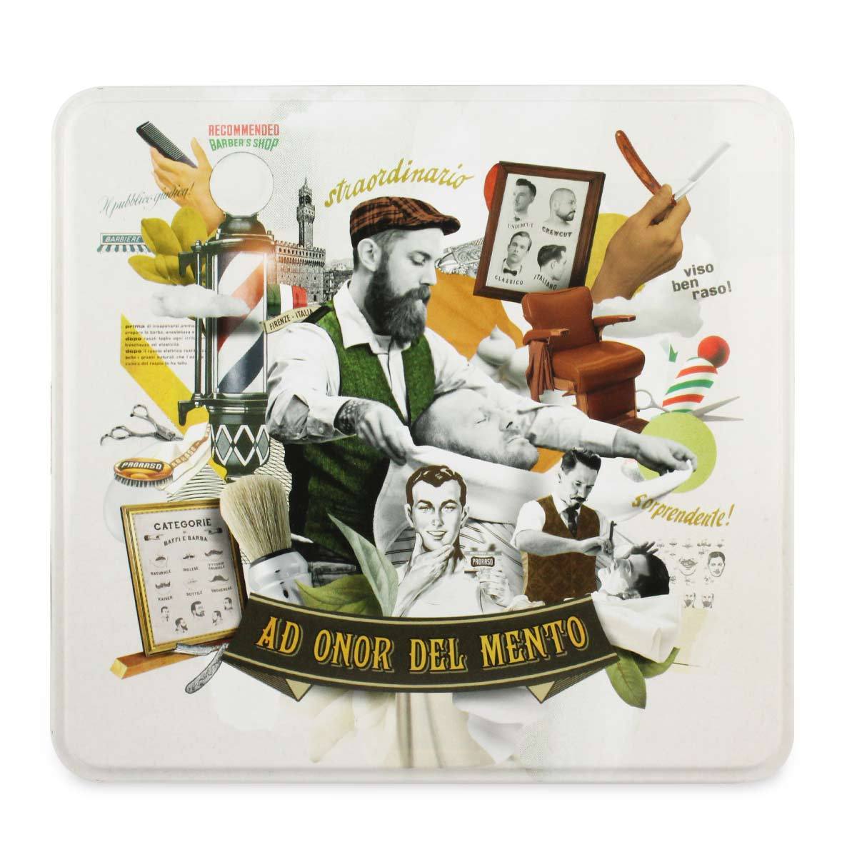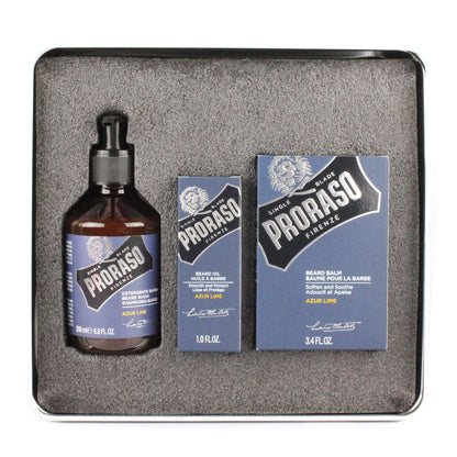 This remarkable collection is housed in a collector's tin designed by Nazario Graziano, an Italian illustrator and collage artist. It depicts a tribute from Proraso to the world of barbers, from the traditional to the modern, with whom they have shaped the story of Italian shaving. The products within are created with the expert hands of professionals using a single blade in mind, focusing on product quality. It is a line created with rich and full-bodied texture formulations.Azur Lime is a citrusy fragrance, with the fresh and musky feel of classic men's cologne. A head of bright lime and cool mint develop into a woodsy and balsamic heart with notes of juniper berry.- Includes 6.8-oz. Beard Wash, 1-oz. Beard Oil, and 3.4-oz. Beard Balm