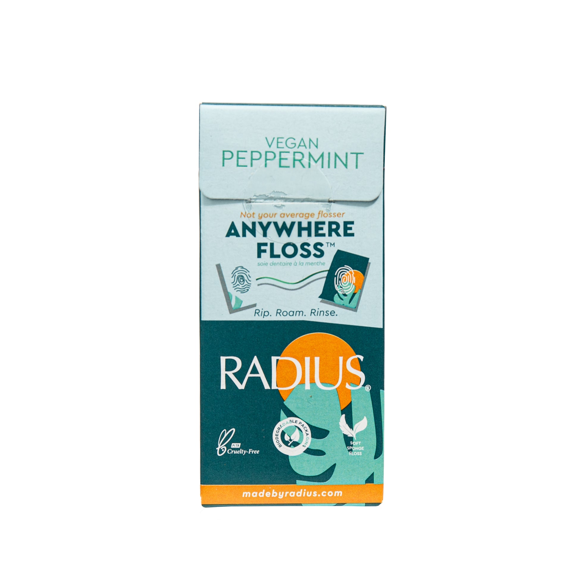 RADIUS Floss Sachets are the newest way to floss! Say goodbye to wasteful plastic flossers and say hello to the perfect amount of floss in a stylish, handy, single-use floss! A super soft nylon floss spun in Candelilla plant wax, these floss sachets are 100% Vegan and are also packaged in 100% biodegradable packaging. RADIUS Floss Sachets are combined with natural, USA-made Xylitol for a clean, fresh, & healthy mouth!No glutens, preservatives, GMOs, artificial sweeteners or color, or fluoride.