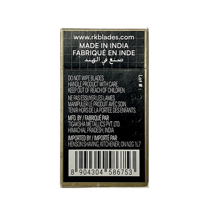 These stainless steel, double edge blades are specifically made to the dimensions of the Henson AL13. RK blades have an extremely high quality of manufacturing with consistent performance and sharpness that performs well when paired with the Henson AL13 (or Ti22). A 100 pack of blades should last the typical shaver 2-3 years.