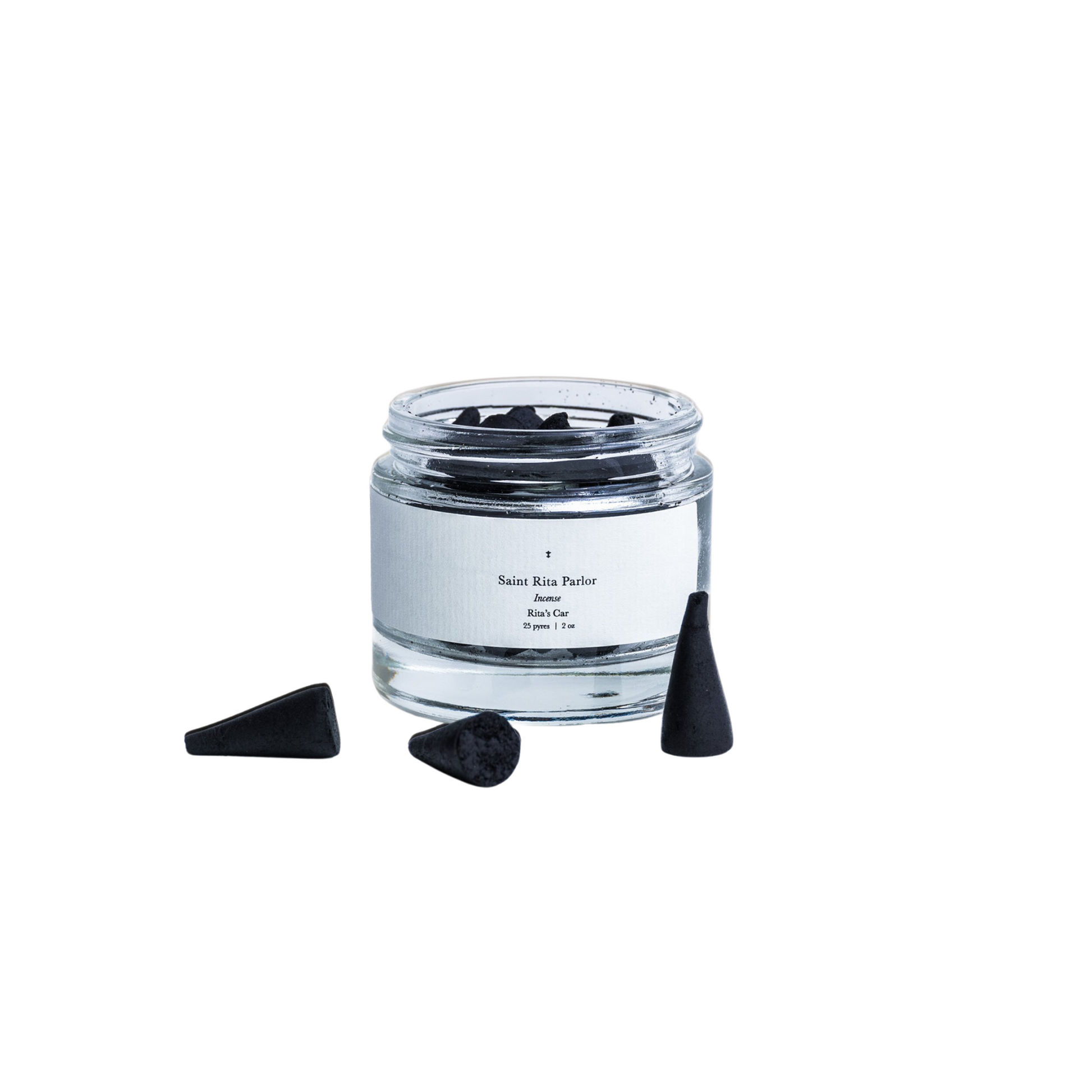 These incense cones are handmade by Saint Rita Parlor in Los Angeles, California. Each jar contains 25 captivating cones.