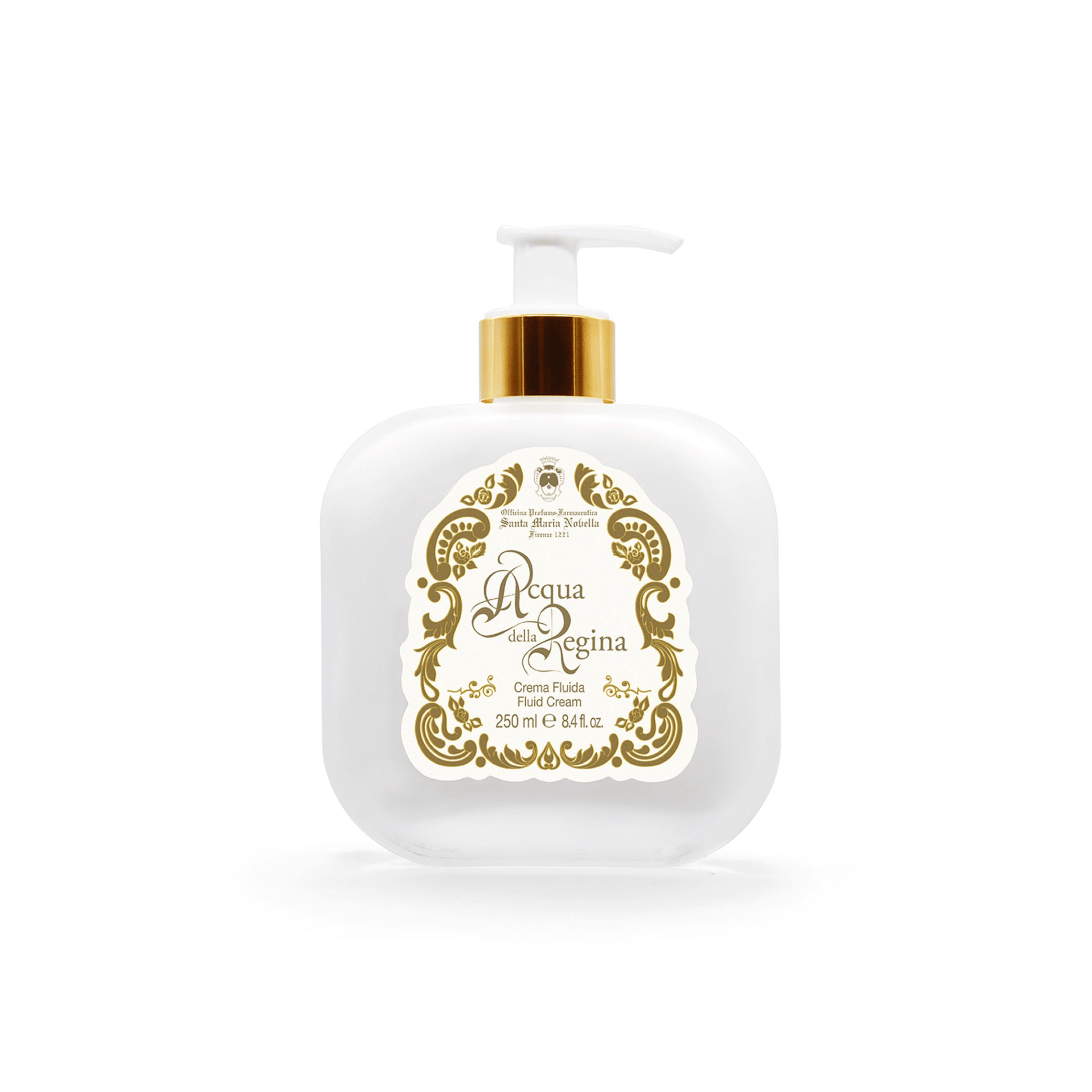 Acqua della Regina: a citrusy discovery for the oldest Officina Profumo-Farmaceutica di Santa Maria Novella fragrance. Their fluid cream is composed with a formula based on vegetable oils and butters, especially formulated to make the body skin pleasantly soft and perfumed. Enriched with lemon pulp extract, traditionally known for its astringent and purifying properties.