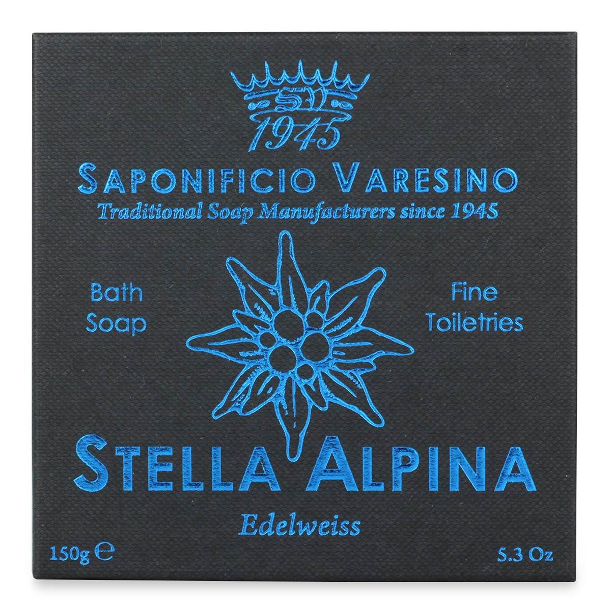 A fantastic bath soap with a fresh citrus and cypress scent. The Stella Alpina scent opens with a mix of Lemon, Bergamot, and Basil. This fresh scent is rounded off with Eucalyptus and Myrtle, with a base of Cypress and Amber. Packaged in a handsome black and blue box, this luxurious Italian soap makes a great gift. If you enjoy the Stella Alpina scent, there is a coordinating aftershave and shave soap. 100% vegetable soap. Contains no palm oil.