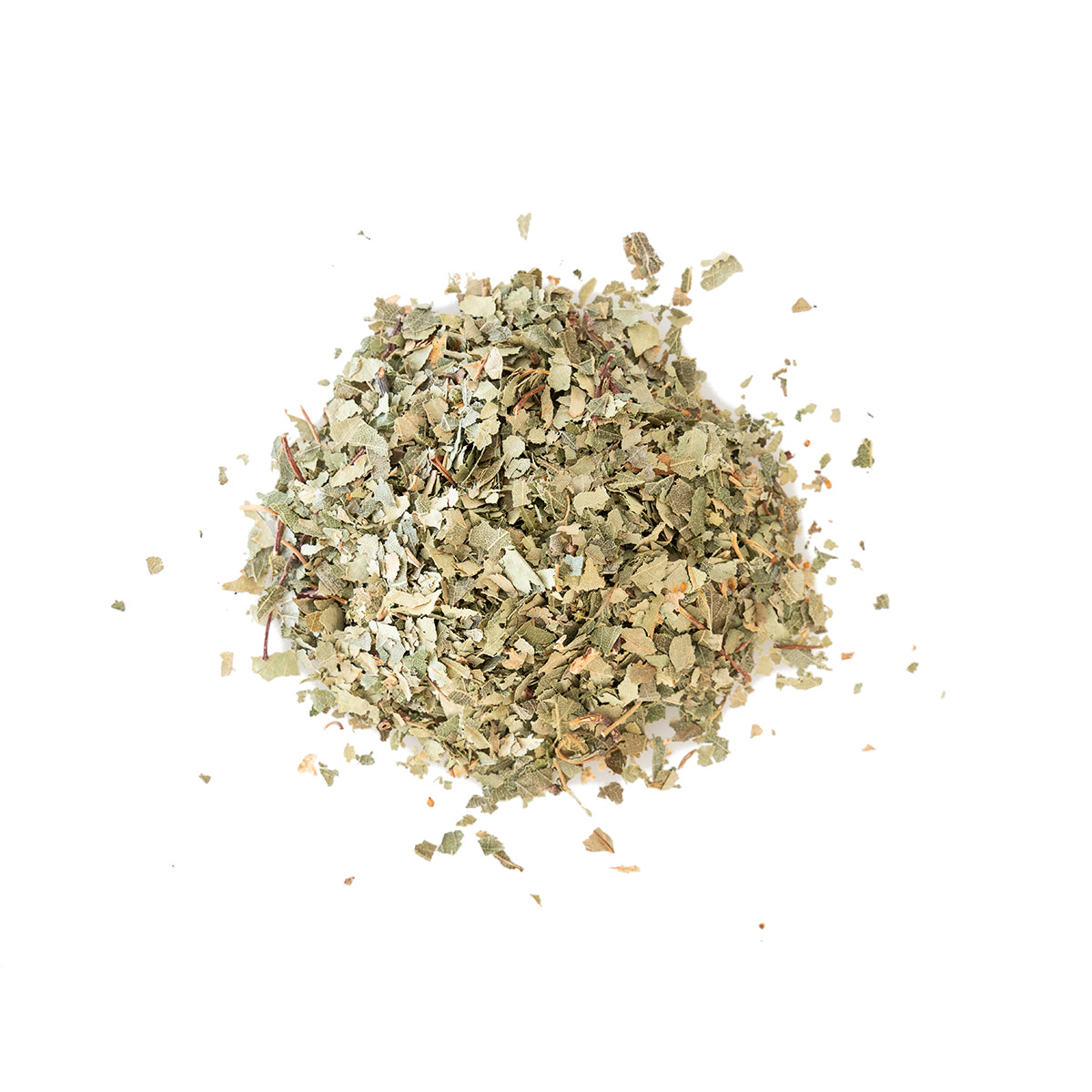 Birch (Betula verricosa, syn. Betula pendula) or Silver Birch is an elegant, deciduous tree with simple opposing leaves and delicate white bark that peels off in layered sections. It proliferates in temperate climates throughout the northern hemisphere, and has long been appreciated by humans for its beauty and usefulness. The name Birch likely derives from the ancient Sanskrit word, ‘Bhurga’ meaning, ‘bark used for writing on’. The mild and tannic, slightly bitter leaves contain vitamin C and salicylates, perfect for steeping into a nutritious tea or infusing in oil for a soothing joint rub.