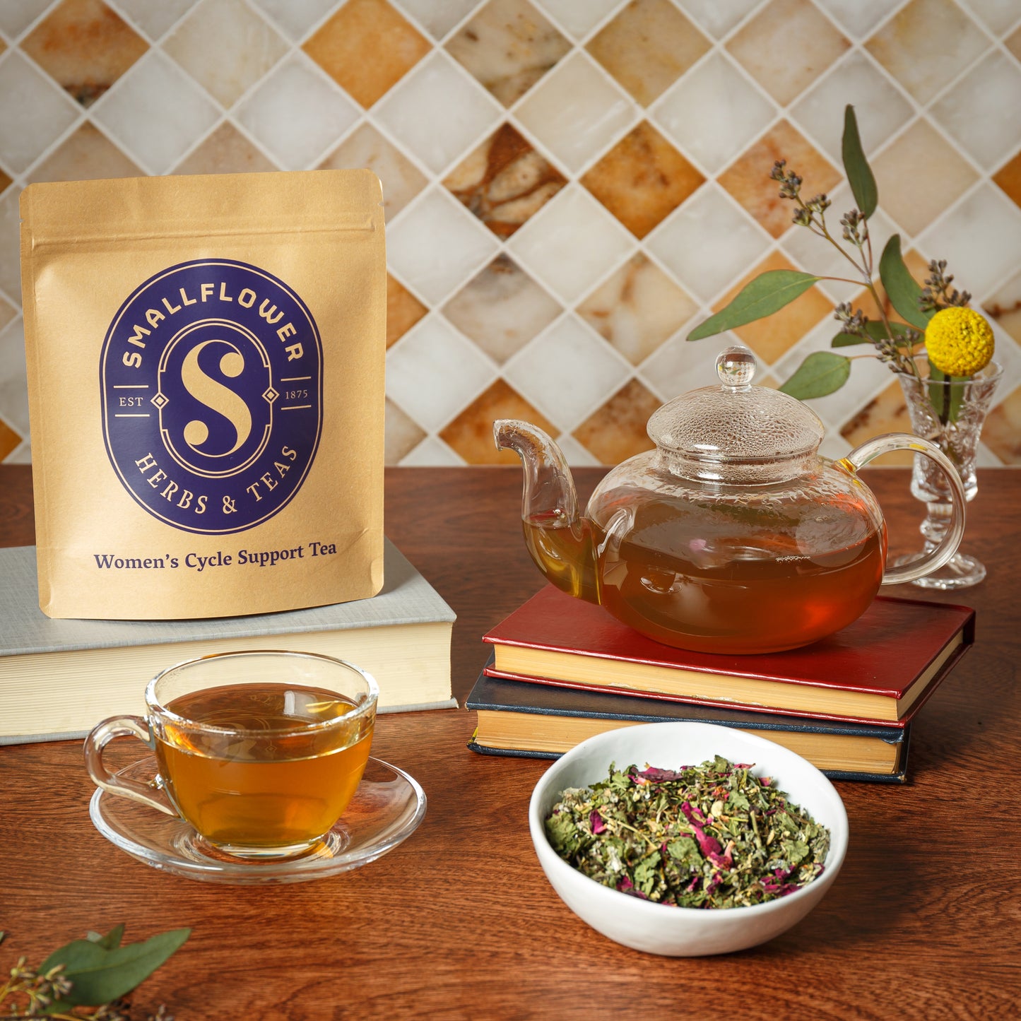 Maintaining a healthy and regular menstrual cycle can be challenging - it affects so many systems in a woman’s body: reproductive, digestive, nervous, and even skin. This unique herbal tea is a well-balanced blend that is not only soothing and supportive for all of these systems, but beautiful and delicious too! It’s a healthy addition to a woman’s wellness routine at any time of the month! Formulated in-house, exclusively for Smallflower.