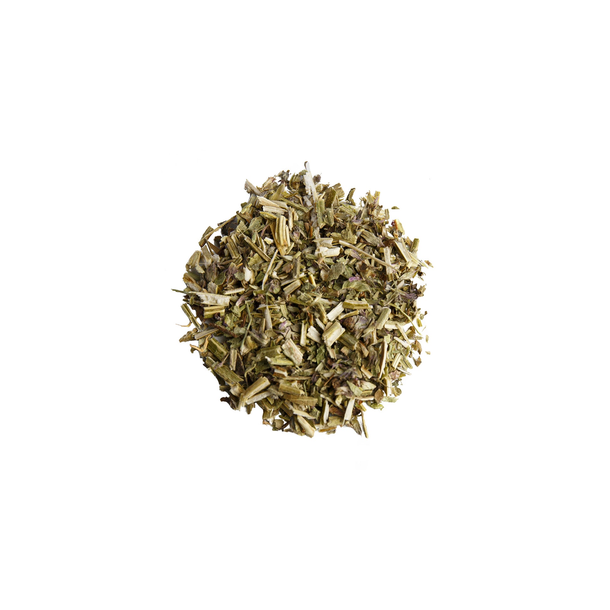 Wood Betony (Stachys officinalis) is a European / Western Asian native plant in the Lamiaceae, or mint, family. Wood Betony is a striking looking plant. It has wrinkled and wooly, dark green leaves growing in a broad basal pattern up to a foot tall. Towering another foot or so above the rest of the plant are bright purple blooms whorled around a spikey top. Wood Betony has a long history of use dating back to ancient Greece and Rome when it was one of the most popular medicinal plants, recommended for everything from battle wounds and fevers to digestion. Its good favor continued through the Middle Ages when Wood Betony was not only revered as a globally effective medicine, but also as a magical protector with powers of the supernatural. This association with magic and folklore is probably why Wood Betony fell out of favor with the scientifically minded set of the 18th century. It is only recently that Wood Betony is seeing a resurgence of popularity with modern herbalists and it is being used again for a wide range of wellness support, particularly digestive health. Wood Betony has a fairly bitter but mild flavor, somewhat reminiscent of a black or green tea.