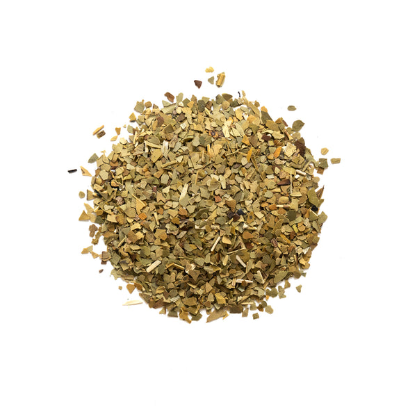 Yerba Maté - (Ilex paraguariensis) is a holly tree native to the South American rainforest. The leaves are harvested by indegenous people in Paraguay and used to make a traditional drink by the same name. This drink is said by enthusiasts to have the strength of coffee, health benefits of tea, and the joy of chocolate. It is extremely popular in South America, so much so, it has been proclaimed the national beverage of not one, but three countries: Argentina, Paraguay and Uruguay. Mate leaves are naturally caffeinated and are quite the antioxidant powerhouse. Yerba Mate contains 24 vitamins and minerals and 15 amino acids, making it a very well-balanced caffeinated drink without all the jitters that may come from coffee. Yerba Mate has a strong, earthy, bitter flavor and is traditionally consumed unsweetened from a hollowed-out gourd, through a metal straw called a bambillo. Yerba Mate can also be steeped in the same manner as tea, sweetened to taste and sipped from your favorite cup or mug.