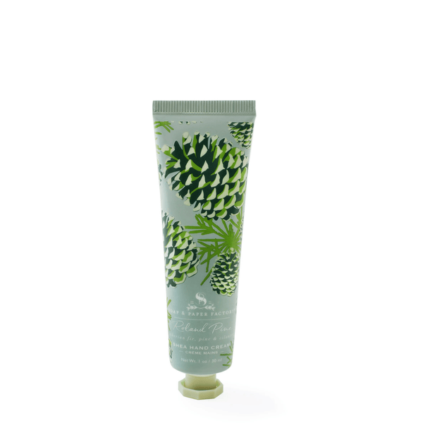 Soap & Paper Factory's Roland Pine 1 oz Petite Shea Butter Hand Cream is truly unique and beautiful, with notes of calming Fir needle and fresh pine. Made with nourishing oils, it glides on smooth and leaves a lingering fragrance.
