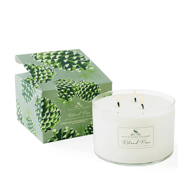 This candle takes Roland Pine to the next level. Chic simple glass looks perfect in any room, anytime of year, while 3 wicks quickly fill your space with forest freshness.