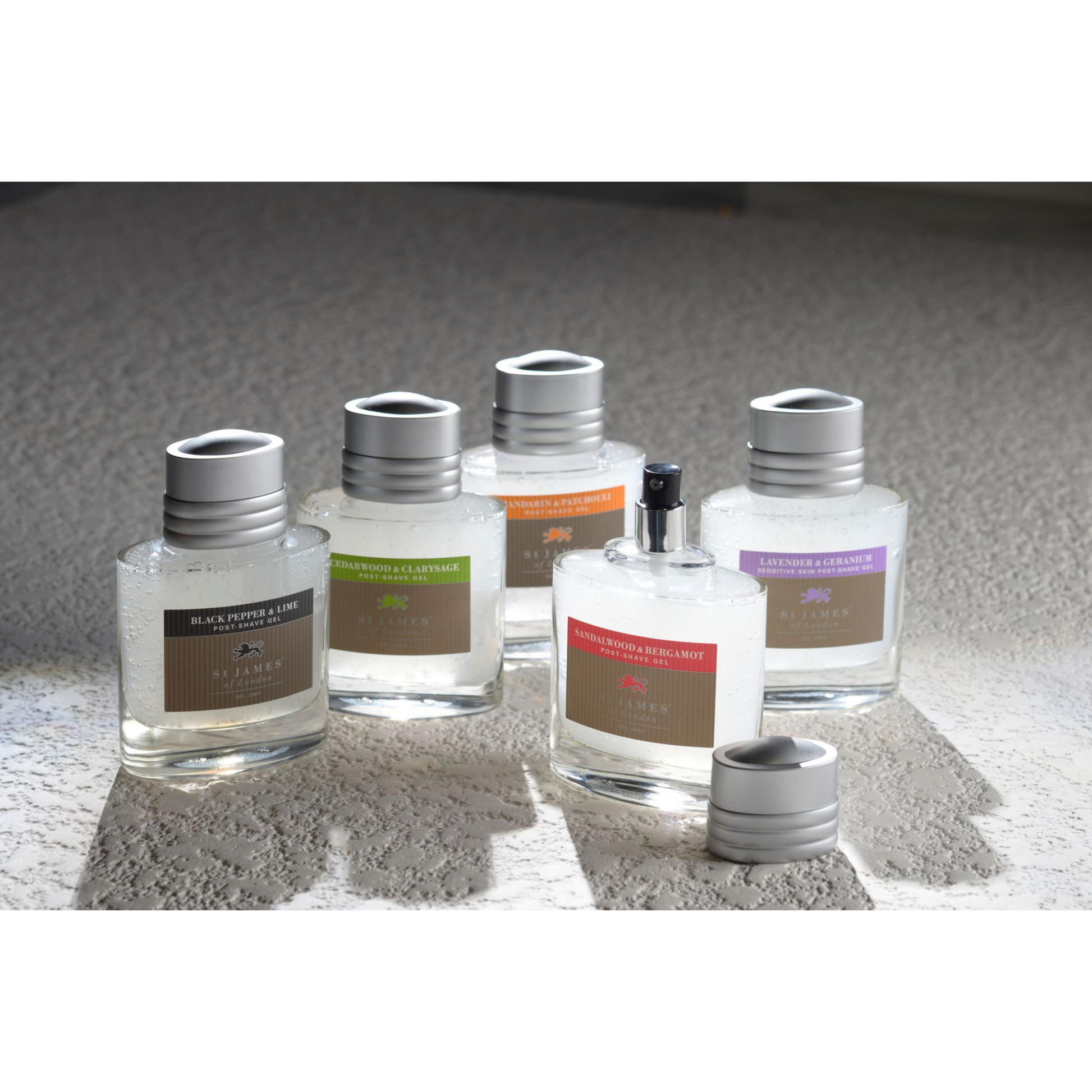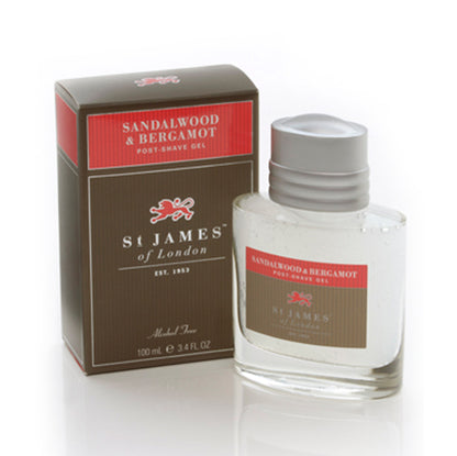 Formulated with only the finest natural oils and extracts, the Post-shave Gel cools, soothes, and hydrates your skin after shaving. A little goes a long way!Sandalwood and Bergamot:Modern English at its finest. Sensual, elegant, natural oils of citrus, soft heart of jasmine, sweet sandalwood, amber and vanilla. Classic. Timeless. Perfect. Created and manufactured in England, St James of London products are alcohol-free, paraben-free and sulfate-free.