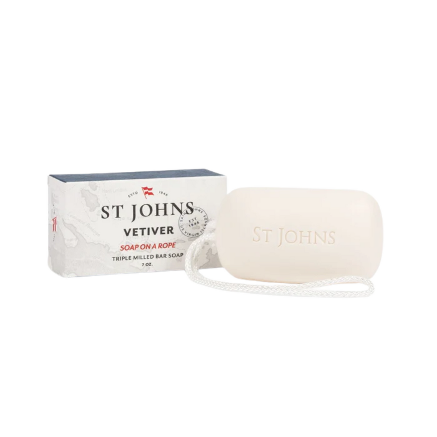 Enjoy this distinctive St Johns fragrance in a bath and shower soap, now on a convenient, space-saving rope. Triple milled to create a luxurious, creamy and fragrant lather for gentle cleaning, this unique triple refining process produces beautiful bars of soap that are hard, glossy, smooth and long lasting.